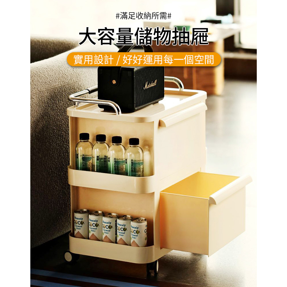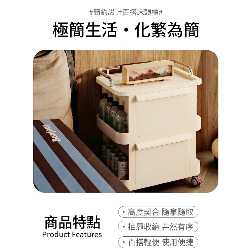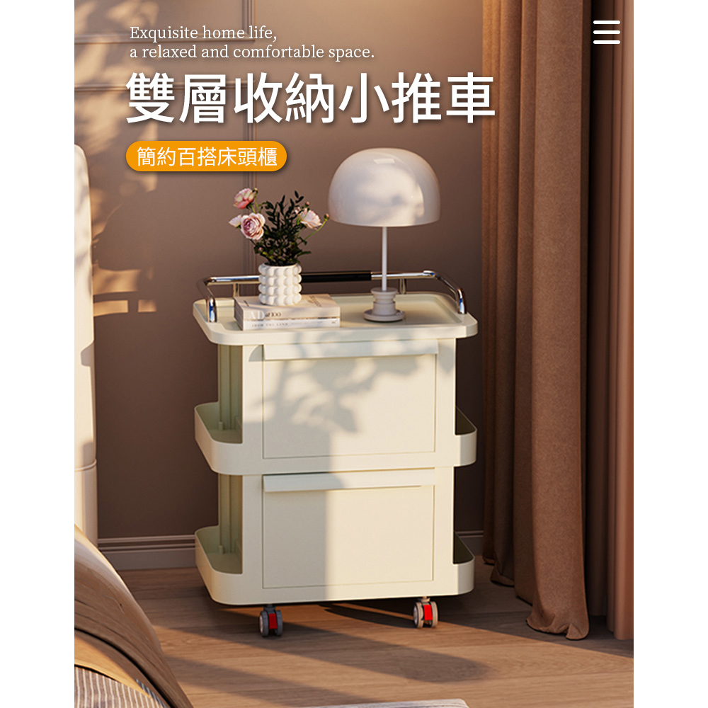 雙抽屜大容量收納 加厚材質 穩固耐重 附萬向輪 移動方便尺寸:34*48*59.5cm±3%