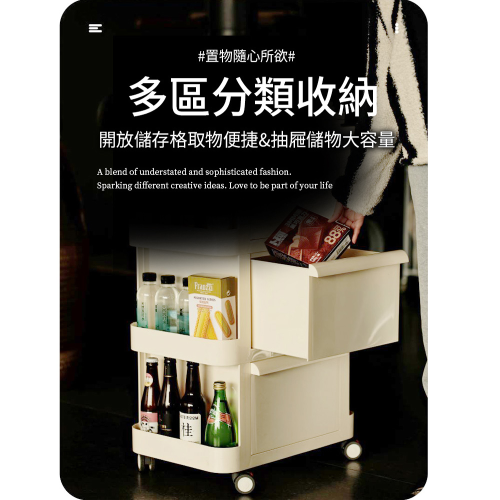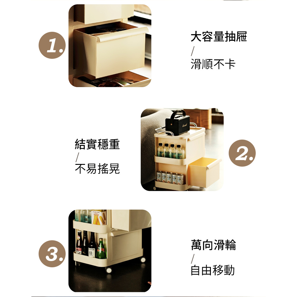 【AOTTO】免組裝奶油風雙層收納小推車(AC-220)