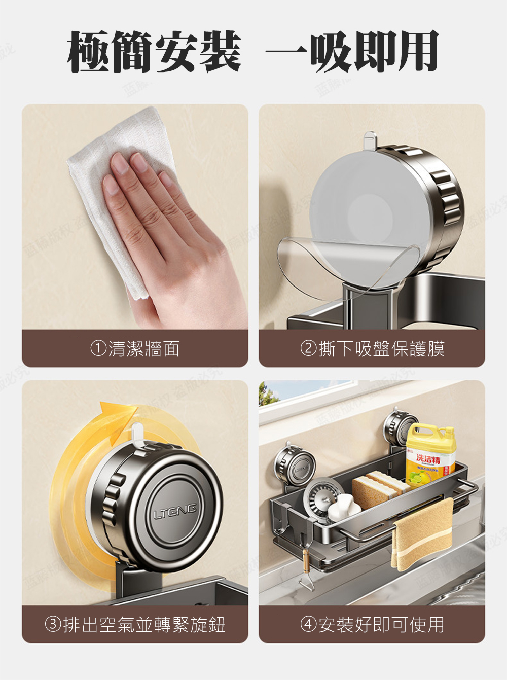 旋鎖式真空強力吸盤置物架
