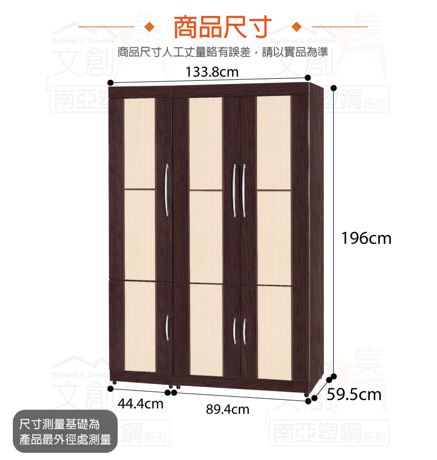 【文創集】杜亞 環保4.5尺南亞塑鋼六門衣櫃/收納櫃組合(吊衣桿+收納鐵籃) 產品採用第一品牌-台製南亞塑鋼舒美板+五金滑軌結構等材質,整體材質採用防水+防燃+無甲醛安心塑鋼材質製造 ,搭配上&下分離式開門櫃+吊衣桿+收納鐵籃+內開放式收納等便利設計,防止受潮,增加支撐力,堅固不會塌陷,全由專人配送到家,專業安心服務,替你省下更多時間!