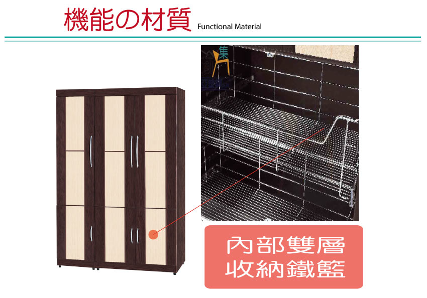 搭配上&下分離式開門櫃+吊衣桿+收納鐵籃+內開放式收納等便利設計