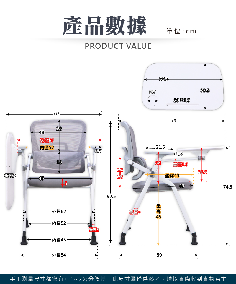 坐高40cm、坐寬45cm、坐深43cm