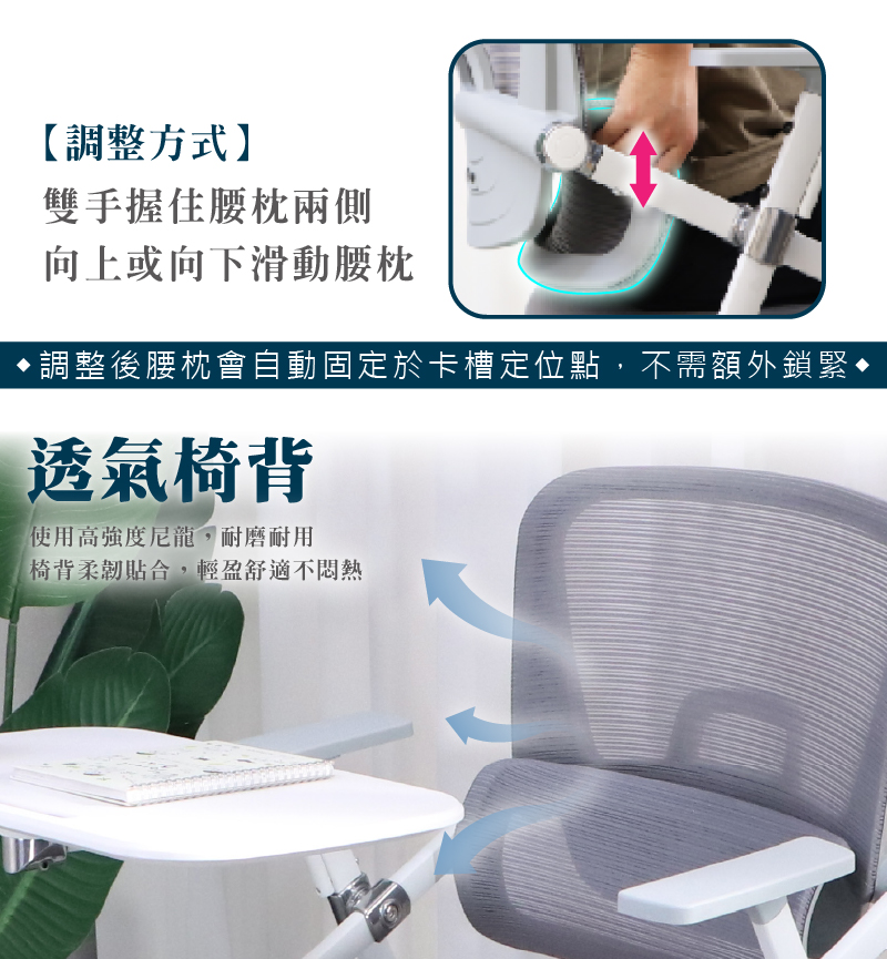 ★透氣支撐腰枕 | 5公分調節配置符合人體工學的腰枕設計,5公分升降調節,完美貼合腰部,舒適感全面提升。