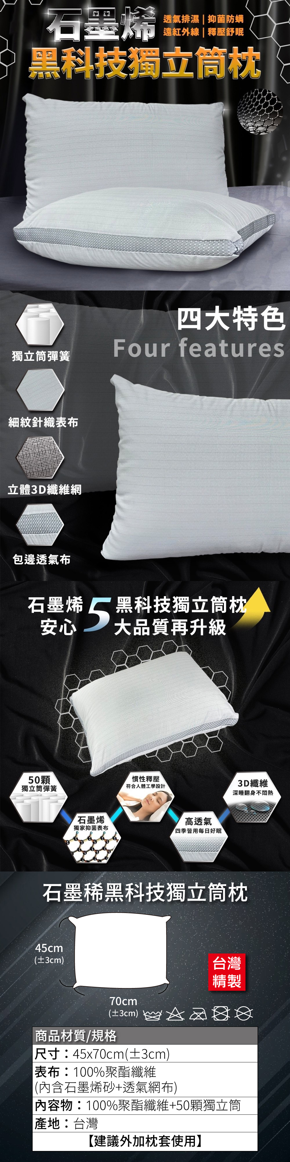 【家購網嚴選】石墨烯獨立筒枕 45X70cm/入