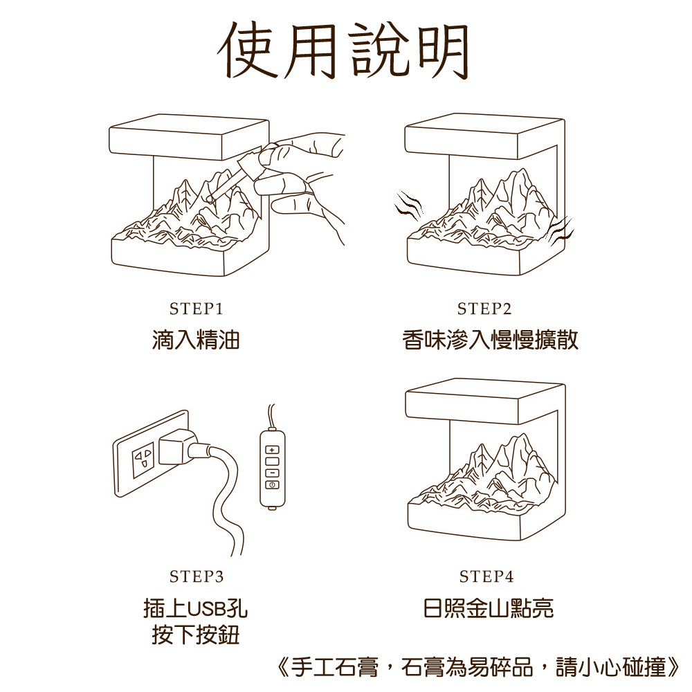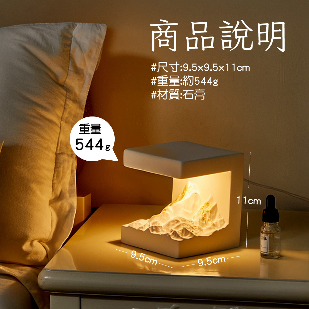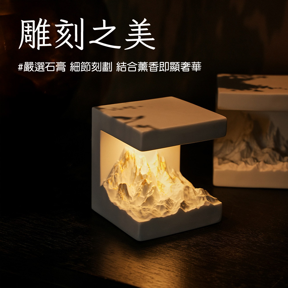 日照金山薰香燈【薰香燈+威士汀白茶精油】 薰香石 小夜燈 玄關燈 雪山夜燈 薰香夜燈 禮物 交換禮物 聖誕節禮物 生日禮物 擴香石