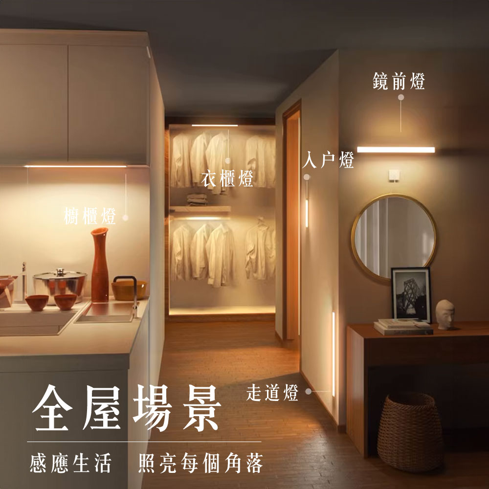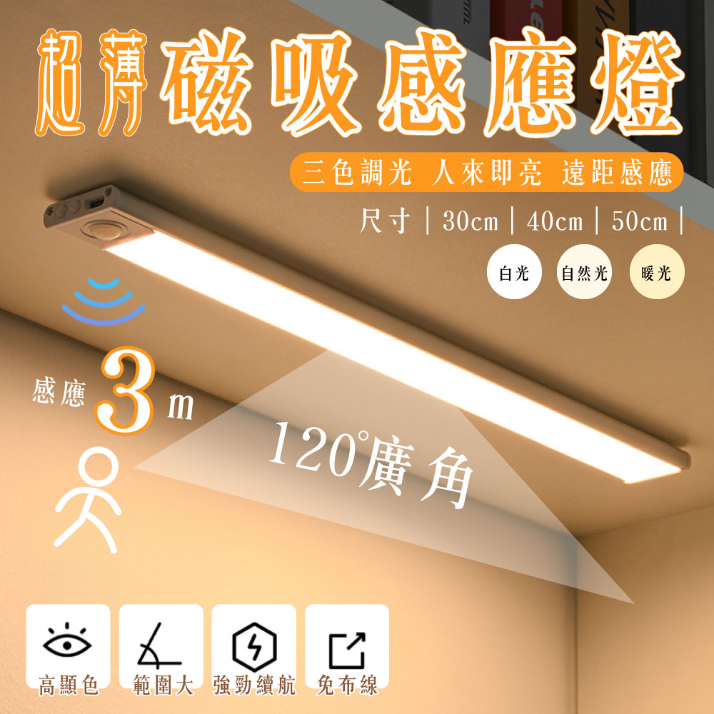 超薄感應磁吸燈【30cm/40cm/50cm】 床頭燈 小夜燈 感應燈 壁燈 三檔色溫 多款尺寸 超薄感應燈 磁吸夜燈 超薄智能感應燈感應燈 LED感應