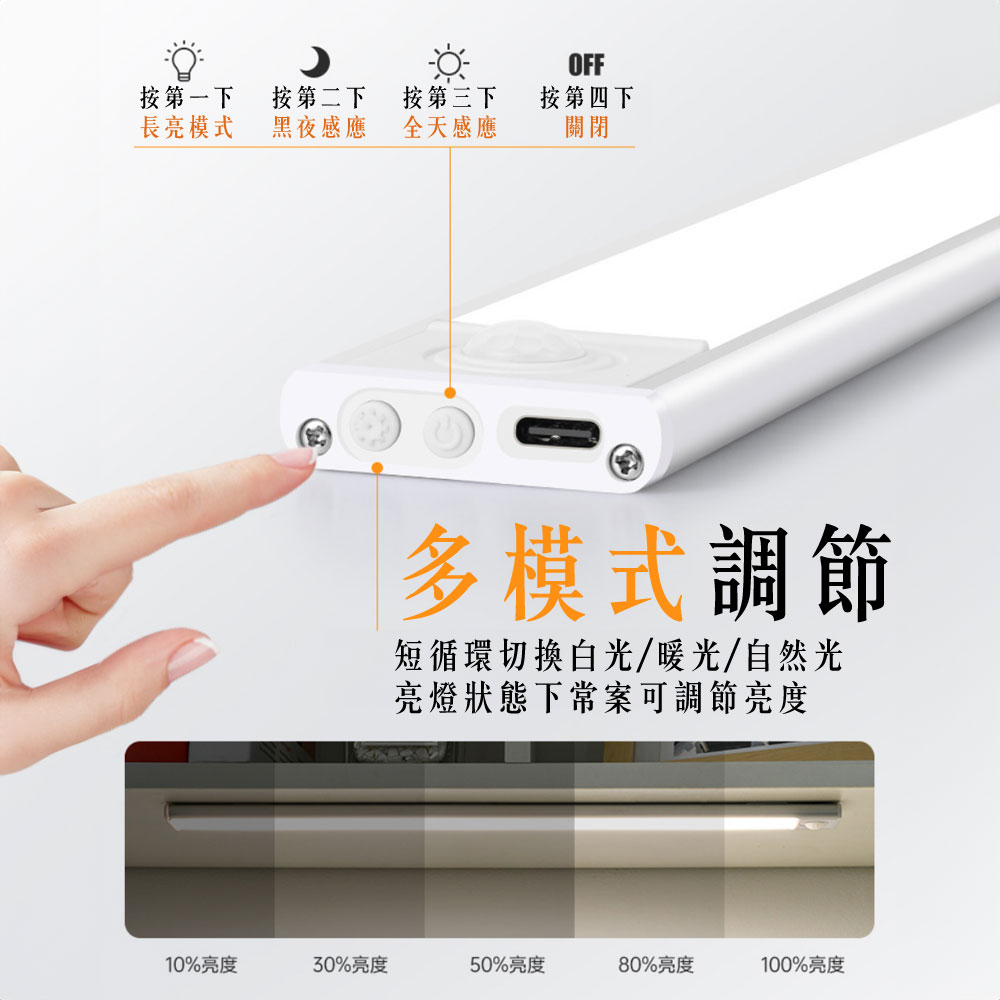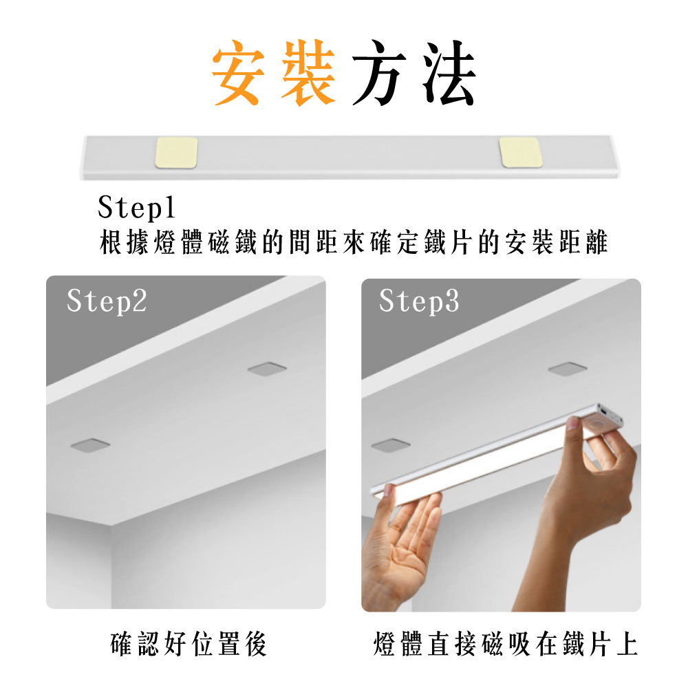 超薄感應磁吸燈 - 點亮您的生活🎈🎈🎈 感應燈亮秒數: 30秒 🎈🎈🎈隨手點亮:不論您何時到家,這盞燈總會為您留下一絲溫暖;夜晚起床時,再也不用擔心踢到床角。多用途安裝:可放置在書桌、衣櫃、床邊等地方,為您提供便利的照明。智能感應:感應角度達120度,感應距離高達3公尺,一鍵開啟,立即使用。長效充電:充電僅需2.5小時,即可使用長達20天。採用Type-C充電口,充電狀態一目了然。多色溫可選:提供白光6000K、自然光4000K、暖光3000K三種色溫選擇,滿足不同場合的照明需求。超薄設計:僅厚度0.9cm,輕巧便攜,不佔空間。安裝便捷:磁吸設計,無需鑽孔,根據磁鐵距離來確認鐵片的安裝距離,直接磁吸即可安裝。尺寸選擇:提供30cm、40cm、50cm三種尺寸選擇,滿足不同空間的照明需求。流明數: 30cm, 106.73lm 40cm, 114.5lm 50cm, 130.15lm寬度: 4cm