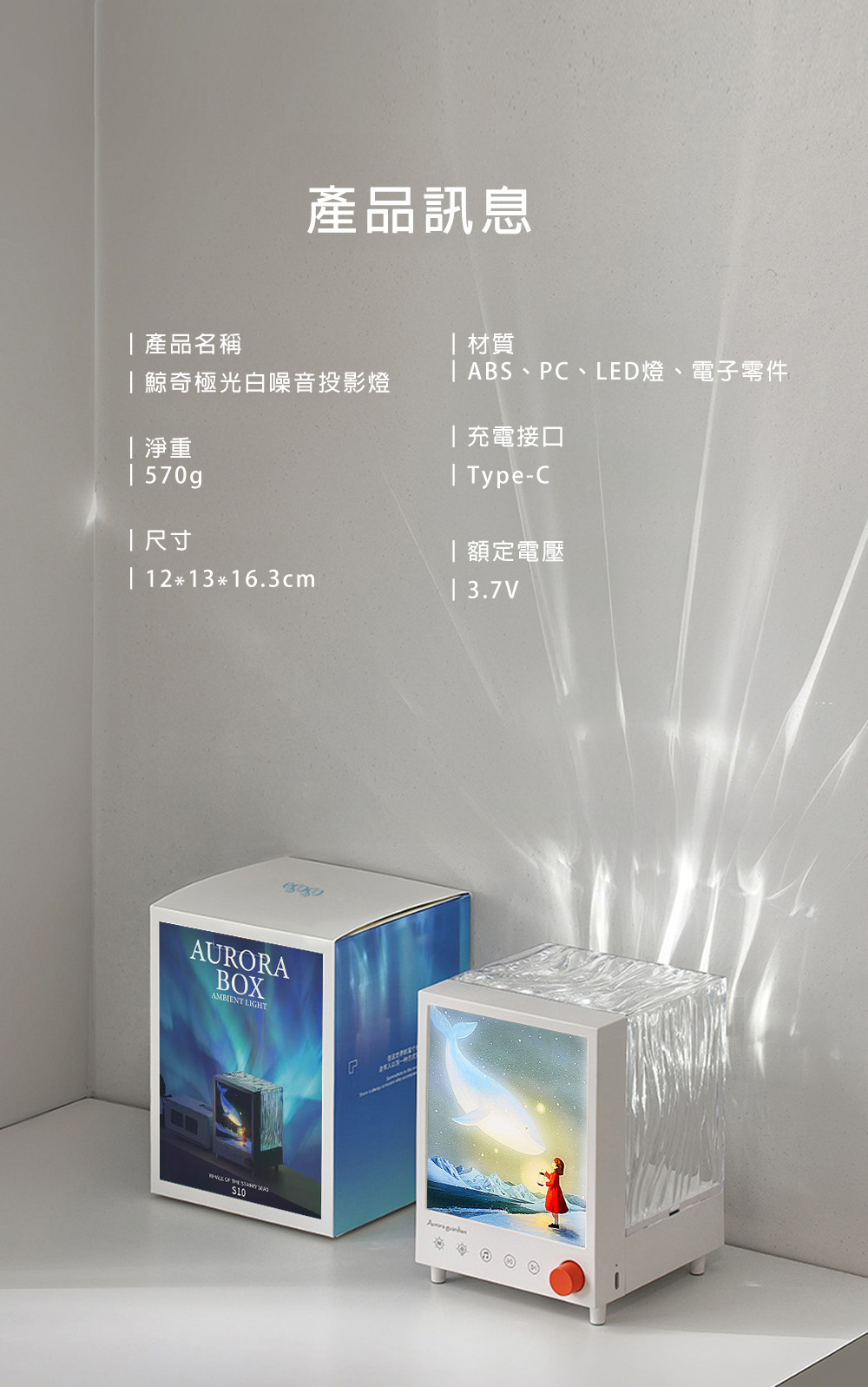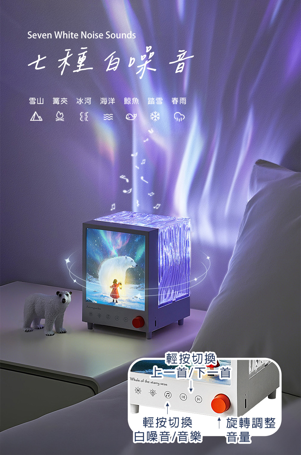白噪音極光投影燈 小夜燈 動態極光 投影燈 鯨魚投影燈 白噪音 夜燈 7彩極光 無段式調光 禮盒 彩盒 雨聲 海聲 雪聲 火聲
