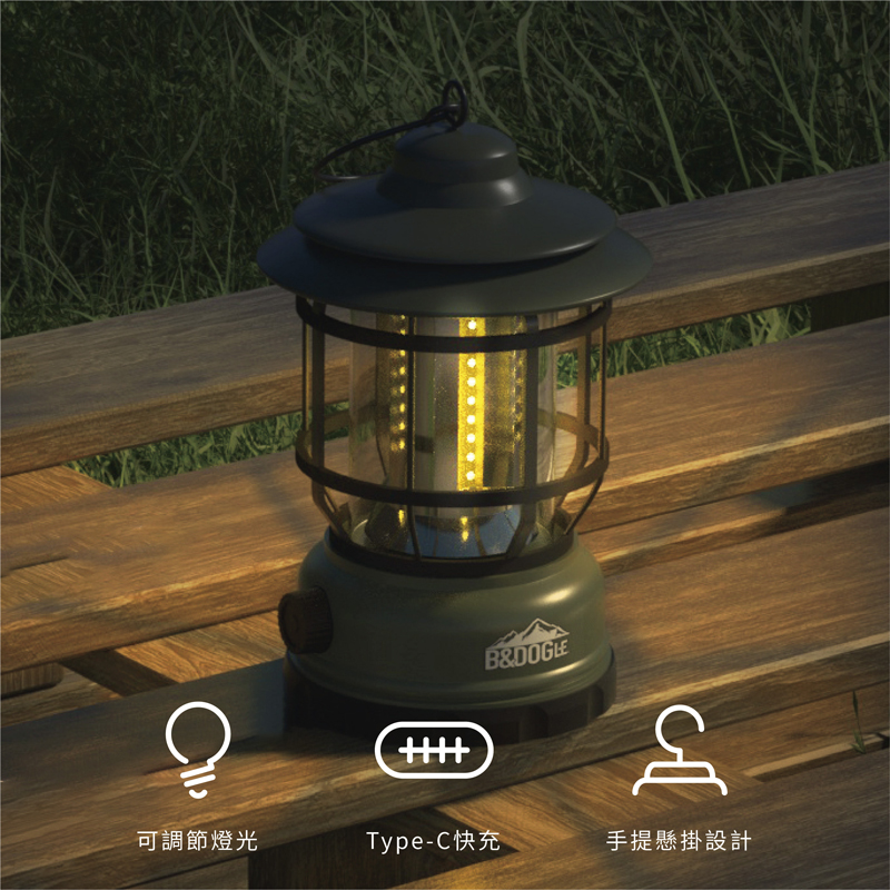復古的森林營燈外型,無論在戶外露營、居家擺設、休閒垂釣、周末旅遊、野外露營,