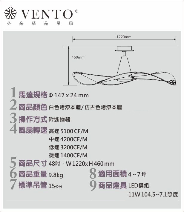 【VENTO芬朵】48吋 SWISH設計師聯名系列 DC直流馬達 有燈款 遙控吊扇 白/粉紅/淺色竹紋/胡桃木紋色 台灣製造