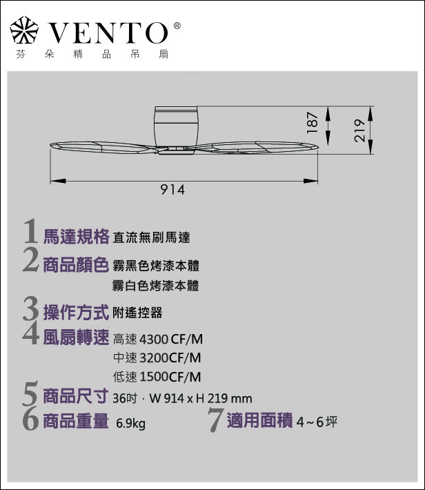 【VENTO芬朵】36吋 SAMARA北歐吸頂系列 DC直流馬達 有燈/無燈款 遙控吊扇 白/黑色本體+白/黑/淺木紋/深木紋/鐵灰木紋實木葉片 台灣製造