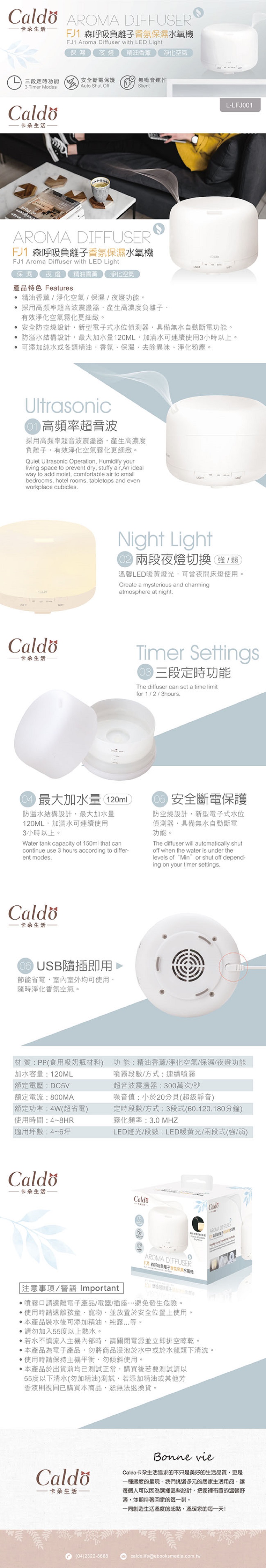 [ Caldo卡朵 ] 森呼吸負離子香氛保濕水氧機 FJ1