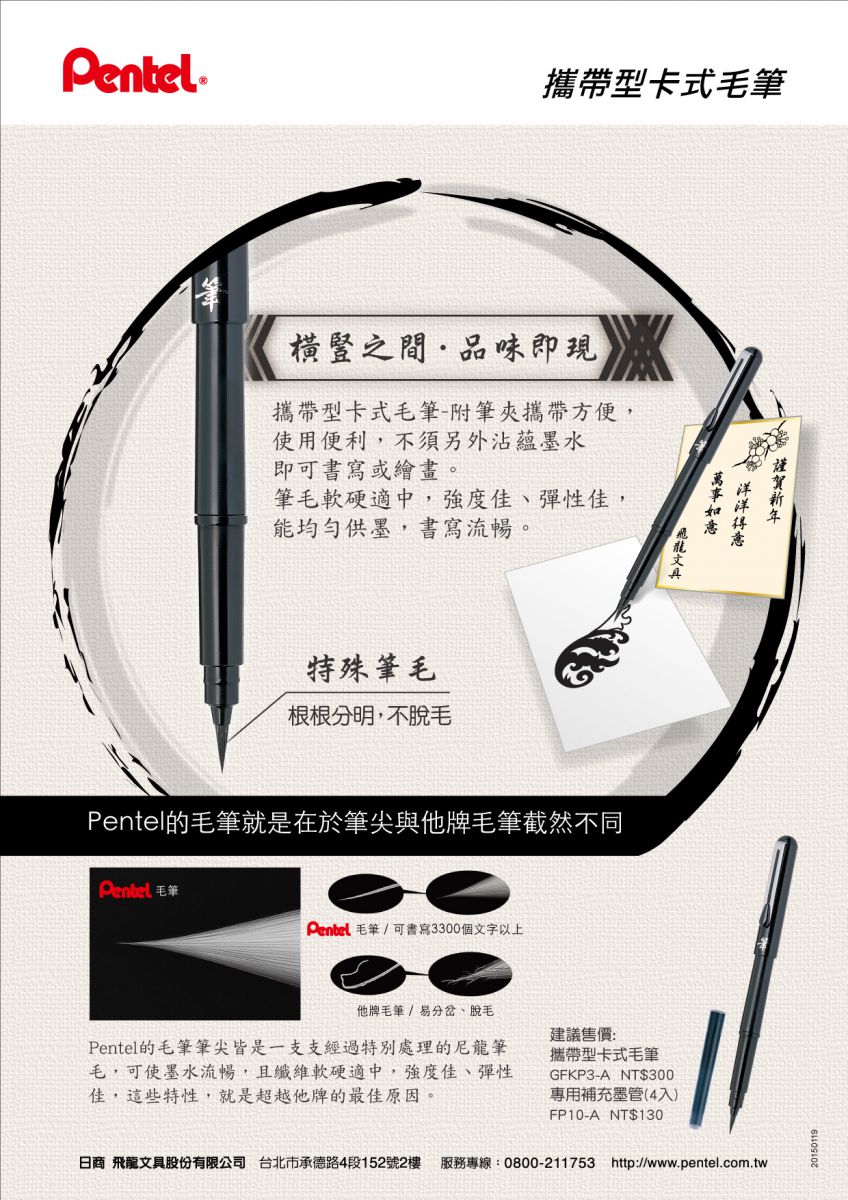 【 Pentel 飛龍 】攜帶型卡式毛筆專用補充墨管 /包 FP10-A