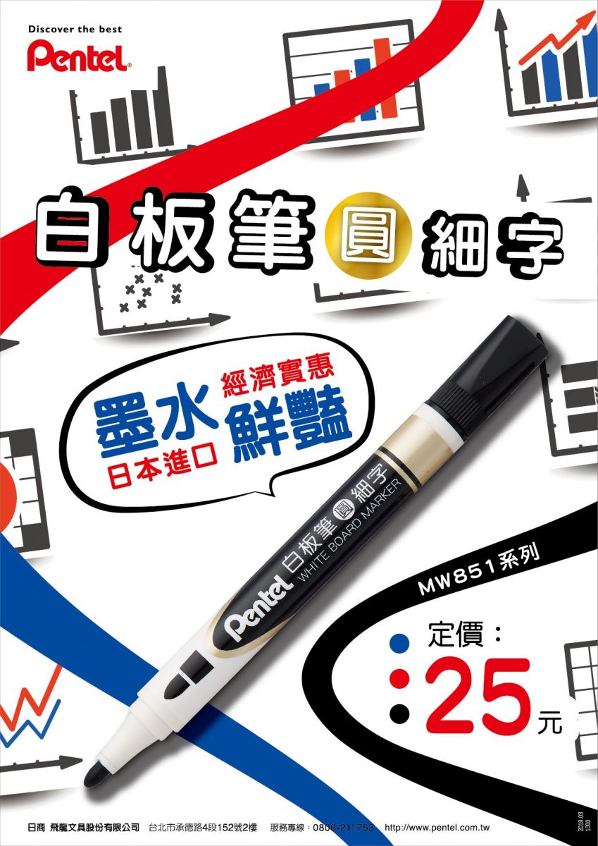 【 Pentel 飛龍 】細字白板筆 圓頭 1.5mm /支 MW851 - 多款可選