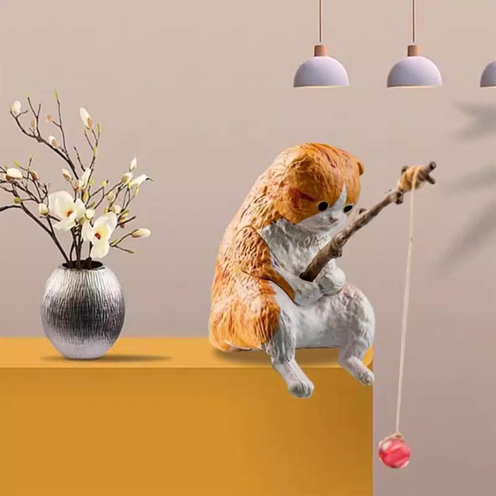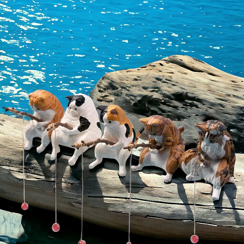 釣魚貓公仔【黑貓(附磁鐵*2)】加購 磁鐵釣魚貓 桌上裝飾 裝飾 小廢物 樹脂 橘貓 黑貓 灰貓 杯緣子 diy 材料 釣魚貓 公仔