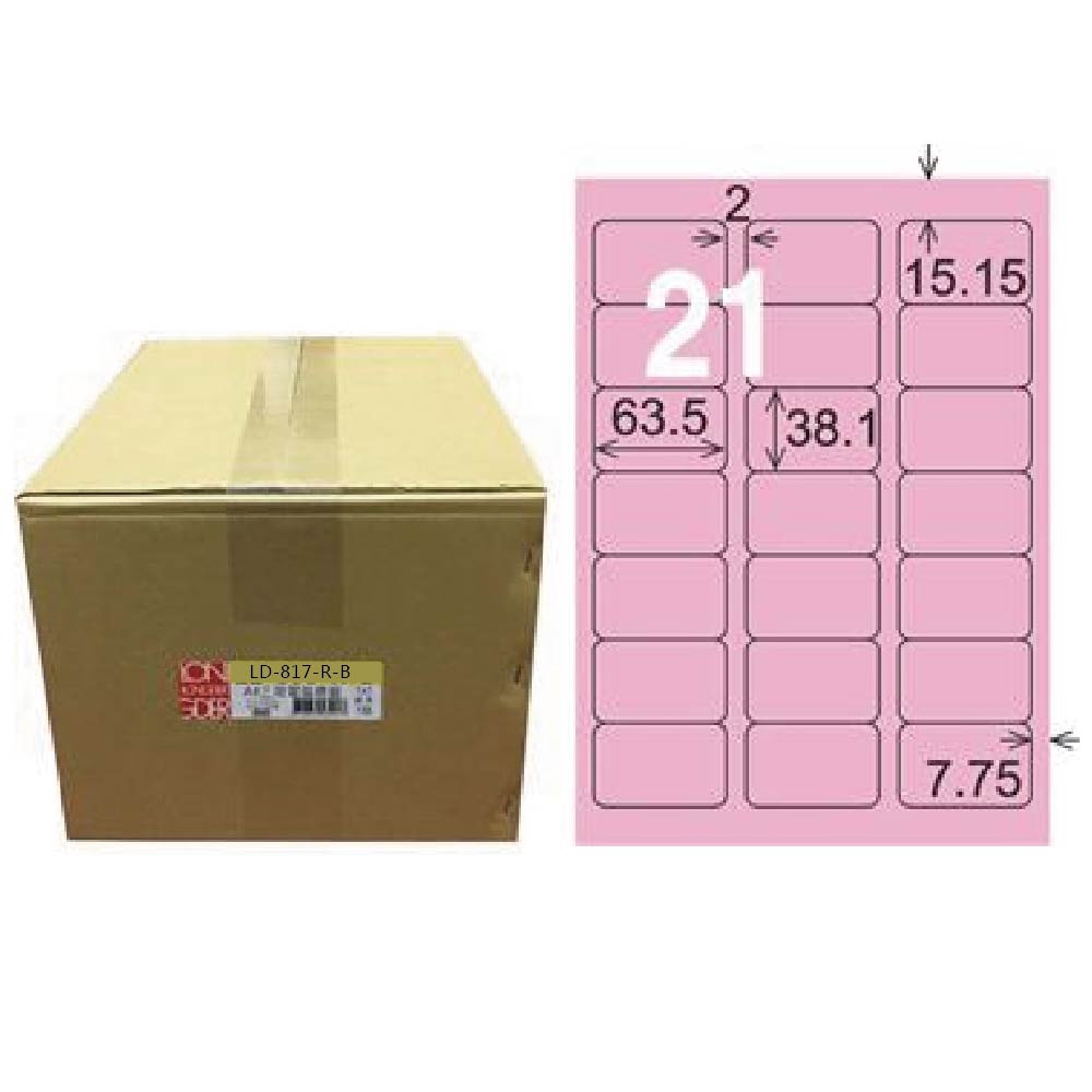 【龍德】LONGDER 三用電腦標籤 A4 21格 圓角38.1*63.5mm粉紅1000張/箱 LD-817-R-B(適用雷射、噴墨、影印)