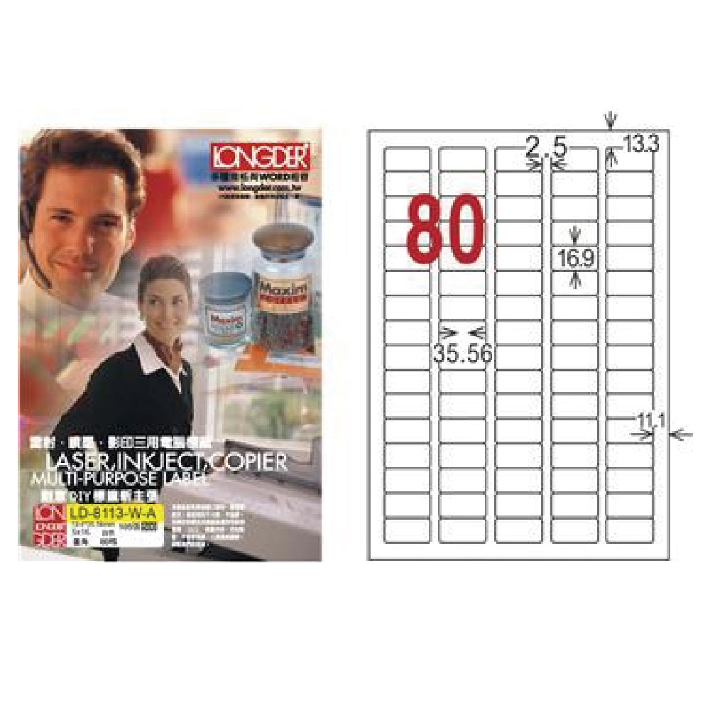 【龍德】LONGDER 三用電腦標籤 A4 80格 16.9*35.56mm白色105張 3盒/組 LD-8113-W-A(適用雷射、噴墨、影印)