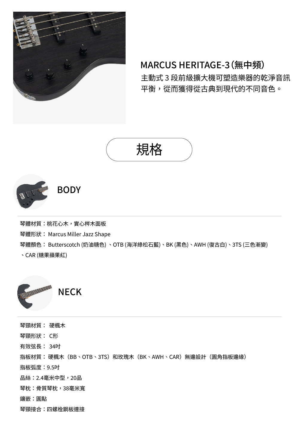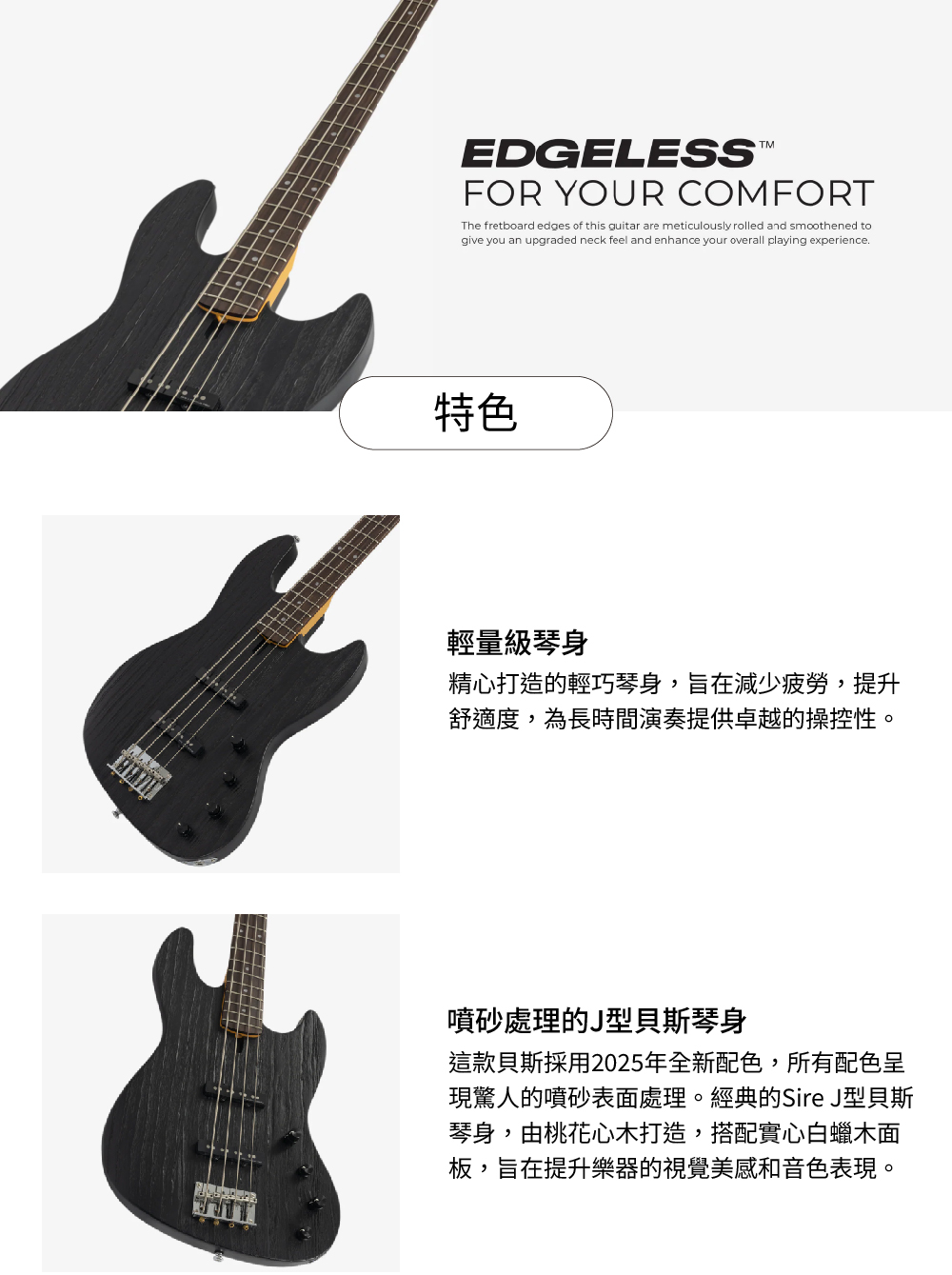 Sire V6 系列電貝斯,由傳奇貝斯手 Marcus Miller 參與合作設計,專為現代樂手打造,是專注於實戰表現的全新 J-Bass 型號。