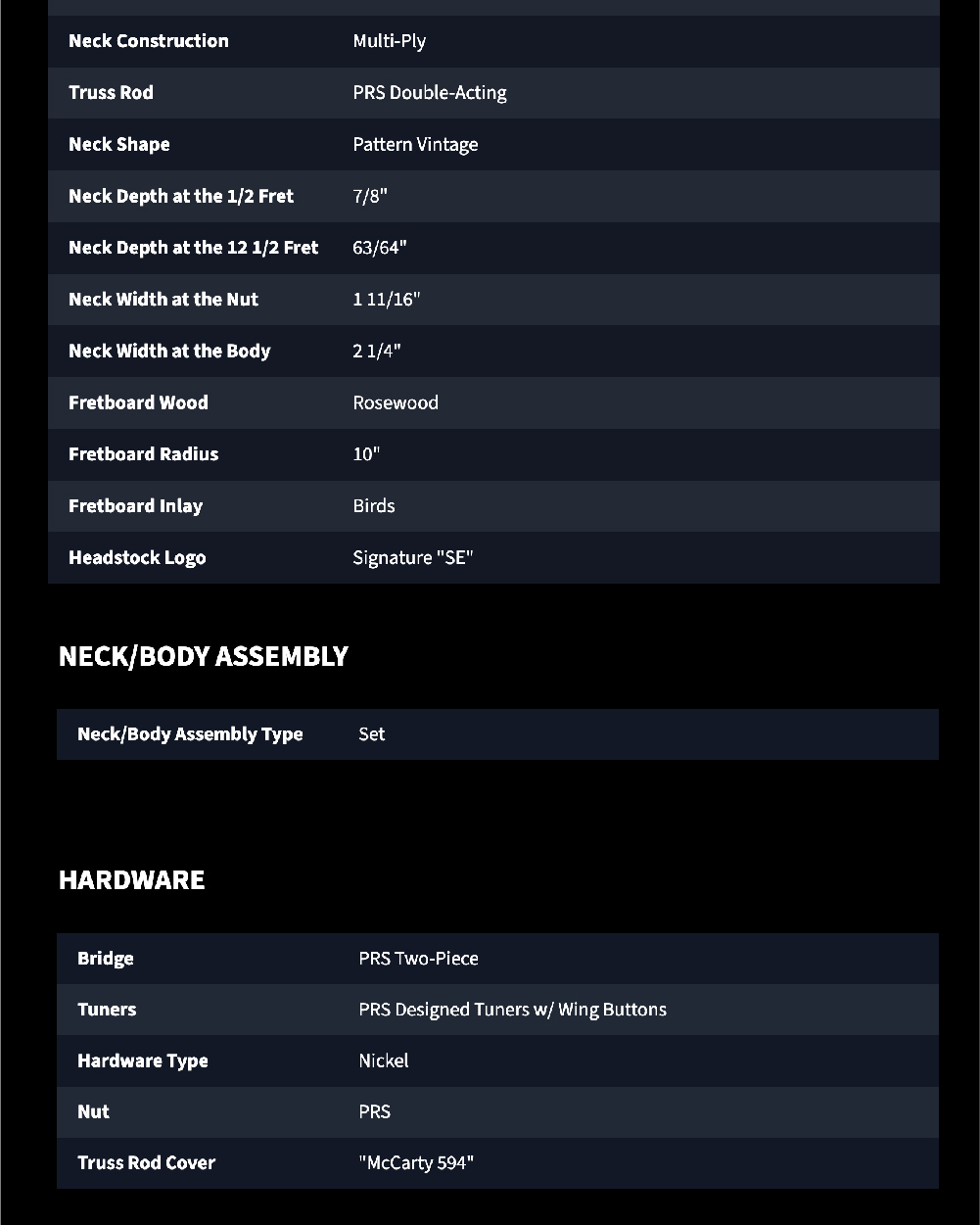這款琴採用 24.594 英吋的弦長長度,這也是其型號名稱的由來。搭配稍微厚實的 Pattern Vintage 琴頸設計,不僅提供了舒適的握感,更增加了琴弦的張力與共鳴。PRS SE McCarty 594 是一款專為追求經典音色與穩定性能的樂手所設計的專業樂器。