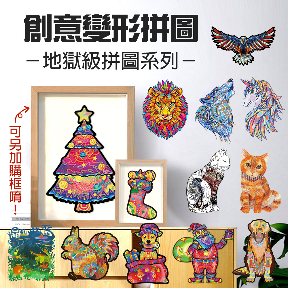 木質拼圖 異形拼圖 【送禮聖誕狗-小】聖誕節 變形拼圖 木盒 3d拼圖 動物拼圖 聖誕禮物 狗 聖誕樹 狼 貓 老鷹 松鼠 聖誕老人