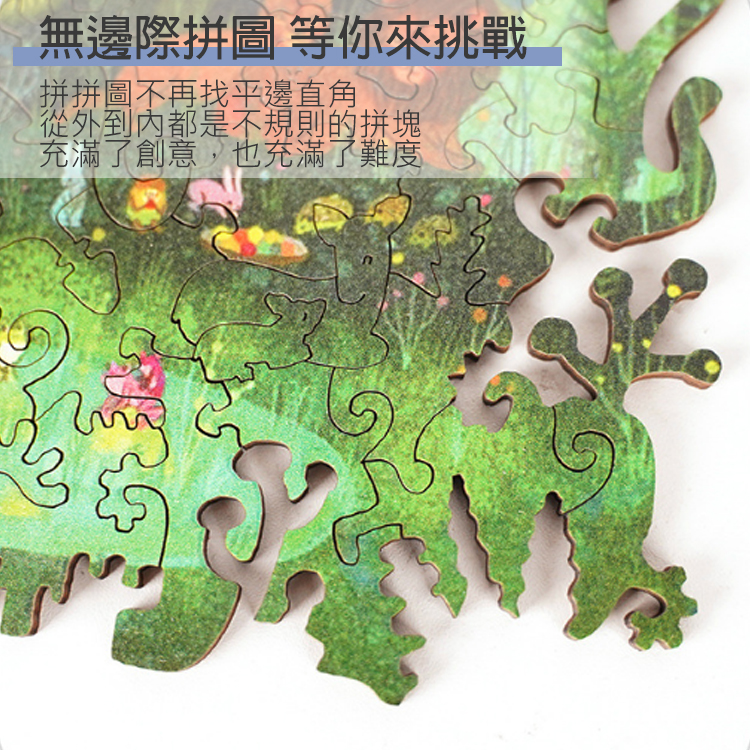 **溫馨提醒:木盒的盒蓋有支架可立起來做裝飾 但它不是拼圖的框喔~~ 拼圖是無法放進去的唷!! 賣場內另有拼圖框可加購唷~【產品特色】變形拼圖:不同於傳統拼圖的固定凹凸形狀,這款拼圖的每片拼圖都呈現不同的造型,遊玩的樂趣更加倍實木材質:使用優良椴木高密度板,厚實堅固韌性強,全家大小都可放心玩樂結實穩固:由整片木材切割而成,咬合度佳縫細小,可輕鬆移動不易散落光滑邊緣:精細打磨去除尖角,質感圓潤細膩,手感滑順舒適獨特設計:每塊小拼圖都是一隻動物、小物品,或是特殊人物,快來找找還有什麼!!雷射切割:誤差控制在最小範圍,預留不同地區、氣候,因溫濕度差的熱漲冷縮精美外盒:與拼圖同為木製材質,拼圖片另收納於紗布束口袋中,整齊又美觀,送禮自用皆合適禮盒可放入:Ⓞ小款拼圖1盒+小款木框1個Ⓞ拼圖任2盒 【產品信息】名稱:木質拼圖材質:椴木木盒尺寸:15*21*5cm重量:小尺寸-30g 大尺寸-100~140g片數:小尺寸-100~110片 大尺寸-240~360片