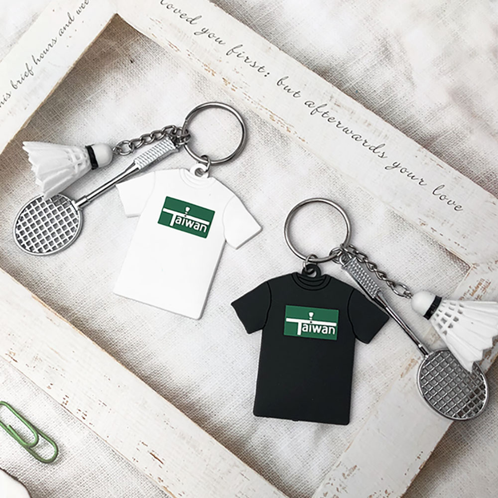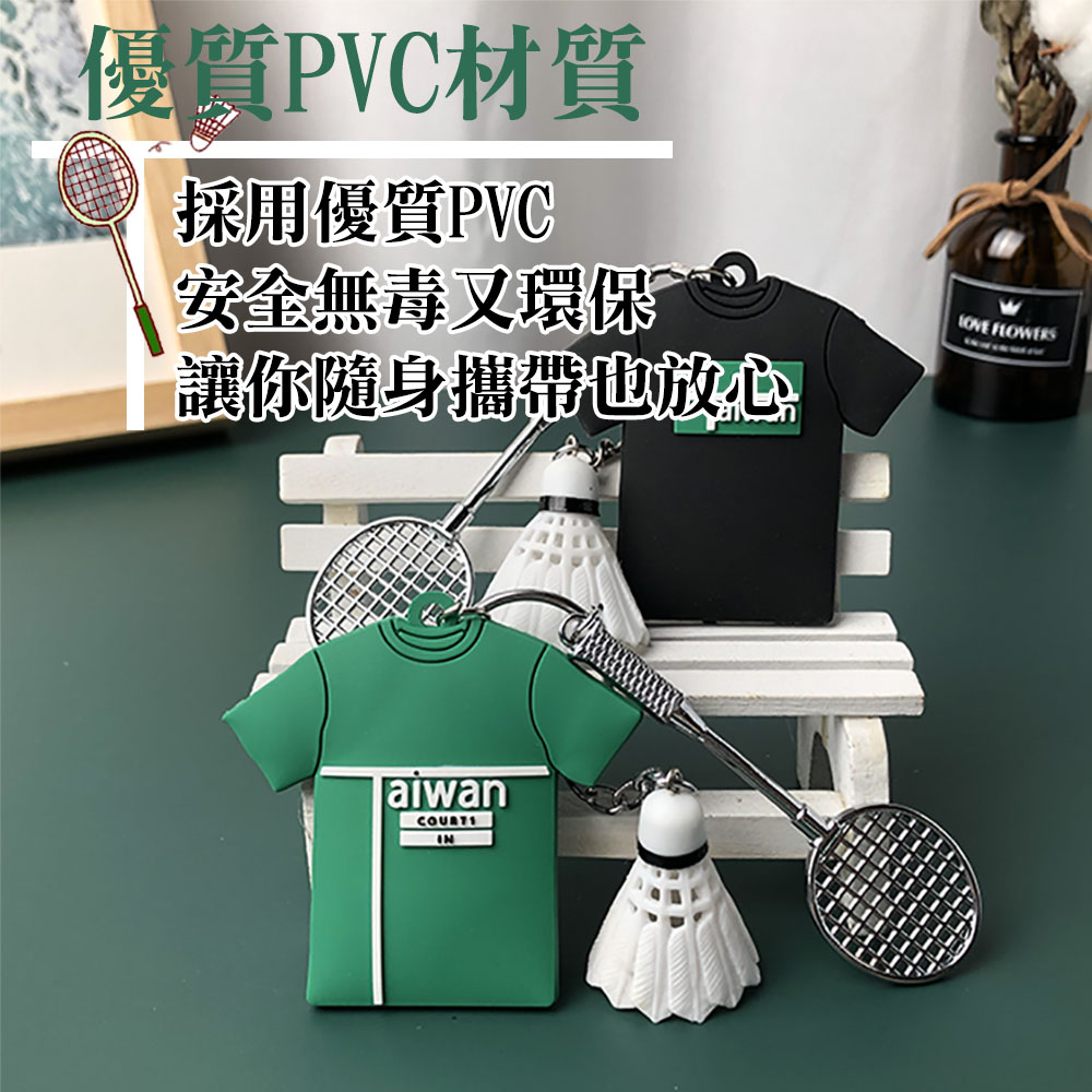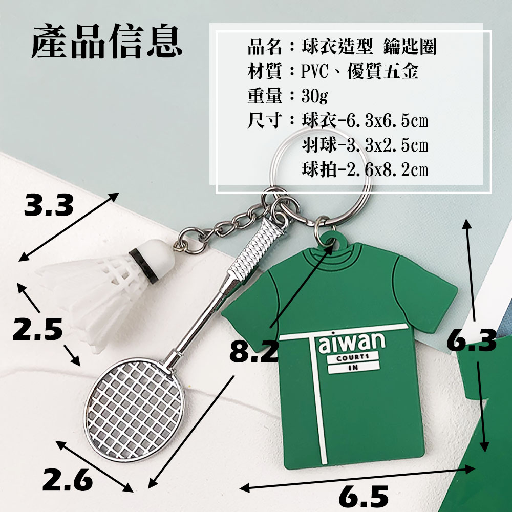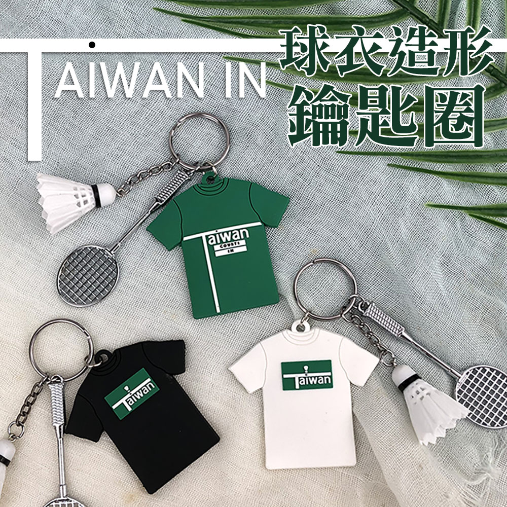 TAIWAN IN 球衣 鑰匙圈【能量綠】 決勝點 羽毛球 羽球 羽球拍 金屬 球拍 PVC 浮雕 金屬羽球拍