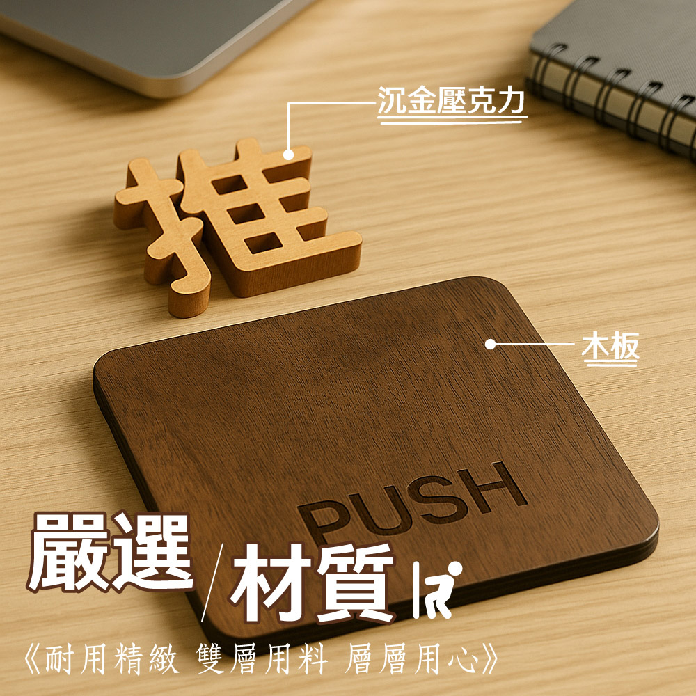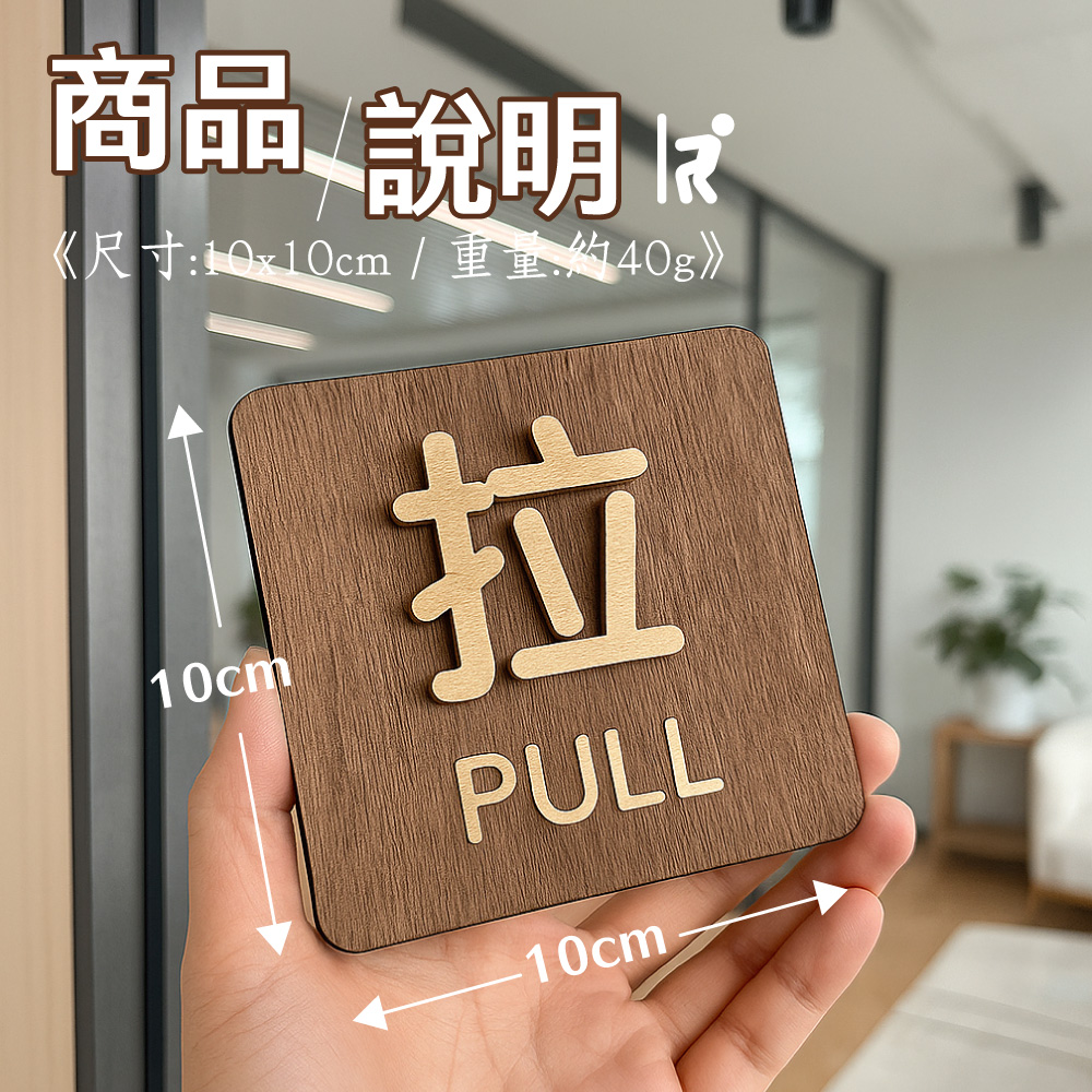 🪄 精緻立體推拉門牌:優雅質感的實用指示 🚪✨ 產品特色 ✨🌟 精雕細琢,品質呈現:採用匠心製作工藝,每一處細節都彰顯質感🪵 優質選材,立體雕刻:實木精心切割打磨,UV激光打印,清晰持久📏 厚實底板,結實耐用:木飾板底板,紋理清晰真實,經久耐用不變形👑 雙層用料,層層用心:結合木飾面板與沉金亞克力字,立體感強烈🛠️ 精工製作:嚴選材料用心制作,呈現極致品質📊 產品規格 📊📐 尺寸/重量:10 x 10 cm / 約40g🧩 材質:實木木飾板 + 沉金亞克力立體字📝 文字:立體"推"字 + UV打印"PUSH"英文🌈 使用優勢 🌈🏆 高質感外觀:實木木飾板搭配仿古銅金字設計,復古又現代,質感滿分,適合各種室內風格🔍 立體雕刻設計:"推"字採用立體沉金亞克力材質,層次分明,更具辨識度與視覺美感🖨️ UV高清印刷:英文字母"PUSH"採用UV打印技術,清晰持久,不易磨損📌 安裝簡便:背面自帶背膠,撕開即貼,免釘免鑽,租屋族也能輕鬆使用🛡️ 細膩工藝打磨:木板邊角打磨圓潤不刮手,細節用心,體現工匠精神🏢 適用場所 🏢🏢 辦公室:會議室、辦公區域、接待處🏪 商業場所:店鋪、咖啡廳、餐廳🏠 居家空間:書房、客廳、衛浴間🏫 公共場所:學校、圖書館、醫院💡 安裝提示 💡🔄 多樣安裝方式:除了自帶背膠直接黏貼,也可加裝麻繩吊掛,適應不同牆面與安裝需求🧲 輕巧不佔空間:輕量設計,厚實卻不笨重,不影響門的開關,實用又方便🎁 送禮首選 🎁無論是新店開業、辦公室裝修、新家入住,這款精緻的推拉門牌都是實用又體面的禮品選擇!✨ 簡約大方的設計風格,展現您的品位與對細節的重視。💝