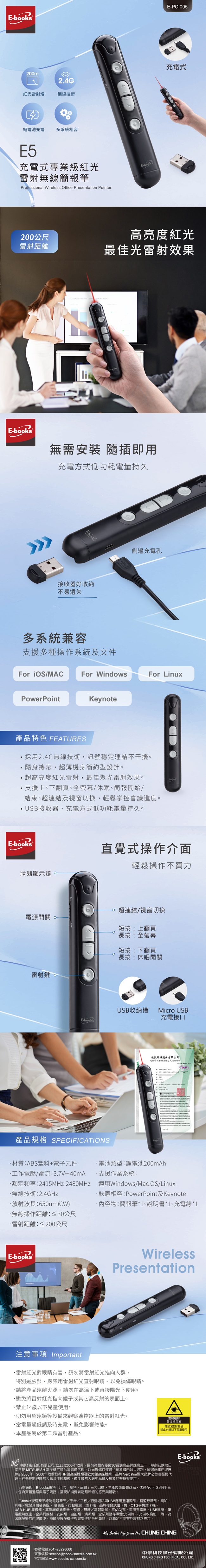 [ E-books ] E5 充電式專業級紅光雷射無線簡報筆