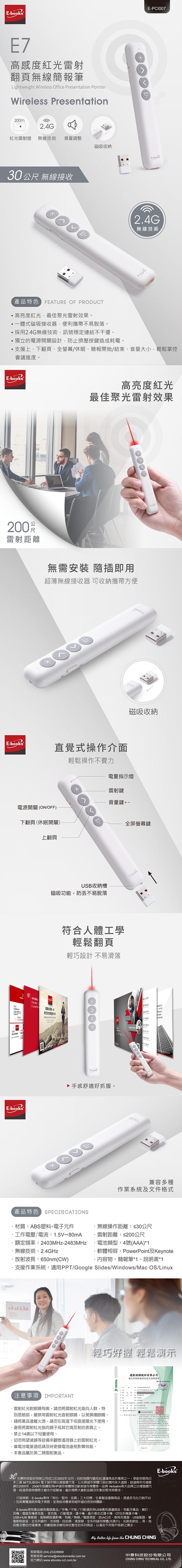 [ E-books ] E7 高感度紅光雷射翻頁無線簡報筆