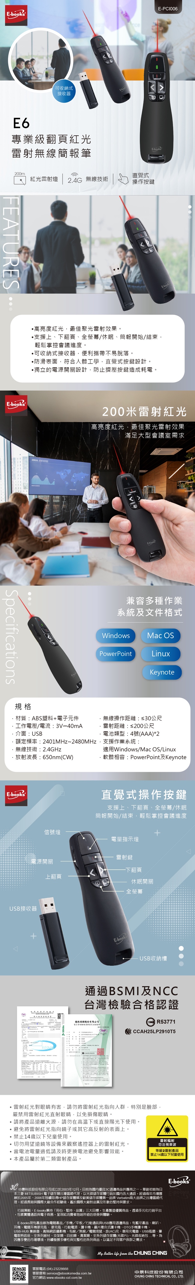 [ E-books ] E6 專業級翻頁紅光雷射無線簡報筆