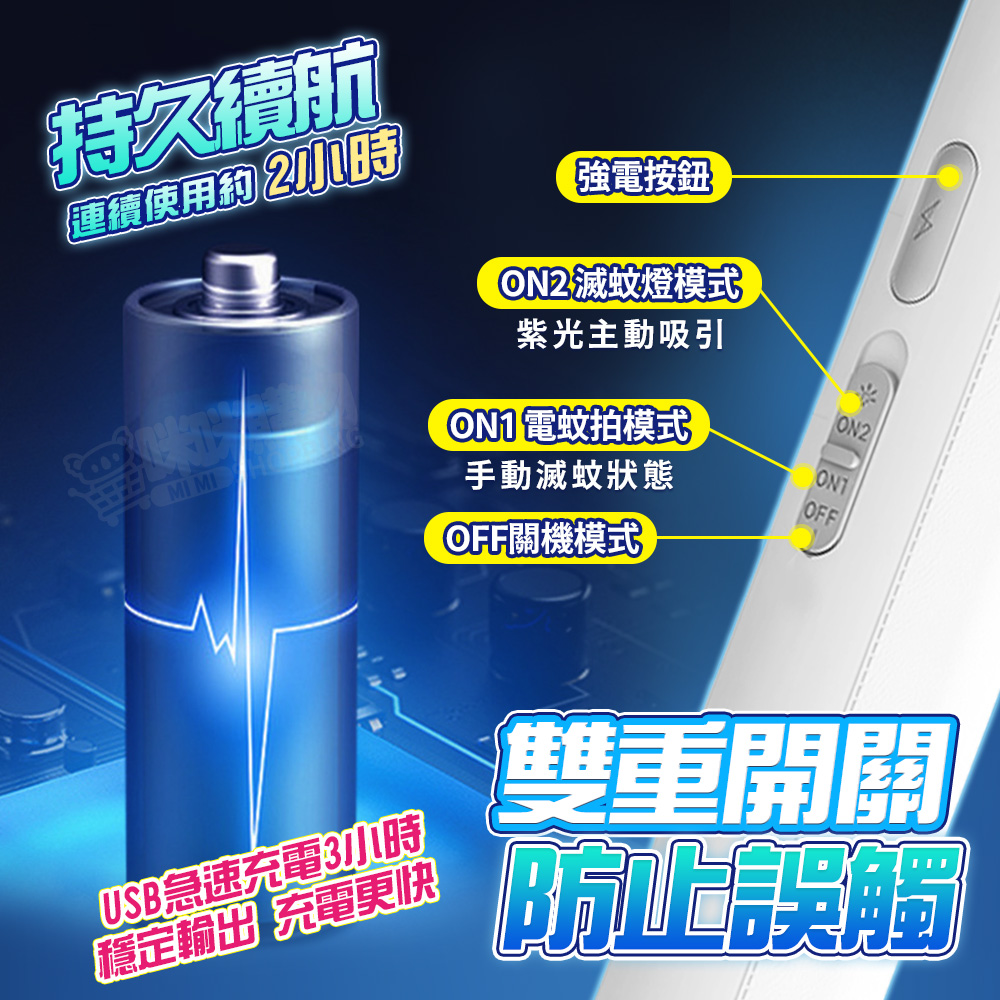 【咪咪購物】兩用電蚊拍 滅蚊燈+電蚊拍 一拍兩用 USB充電紫外光滅蚊