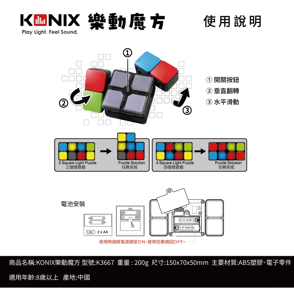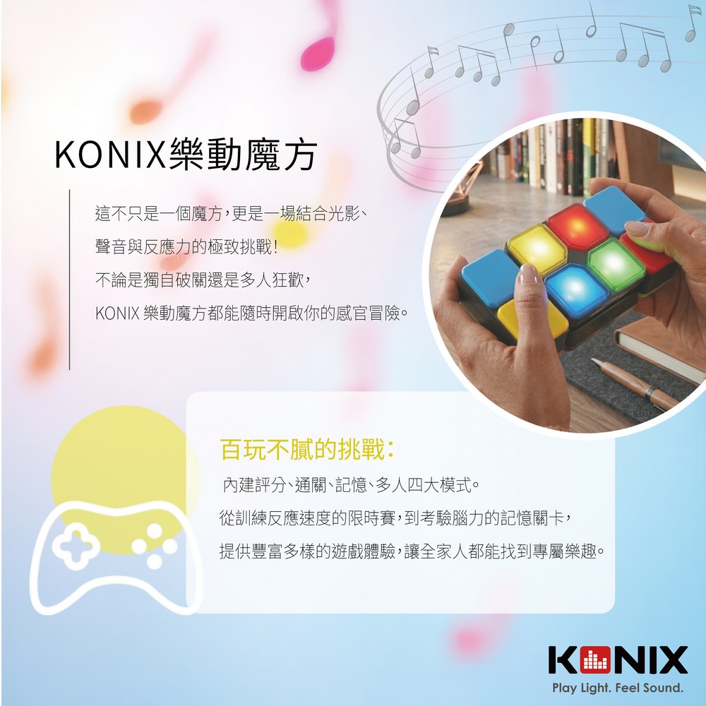 這不只是一個魔方,更是一場結合結合光影反應、記憶挑戰與節奏律動的極致挑戰!200g 的輕巧體積,不論是獨自破關還是多人狂歡,KONIX樂動魔方都能隨時開啟你的感官冒險。