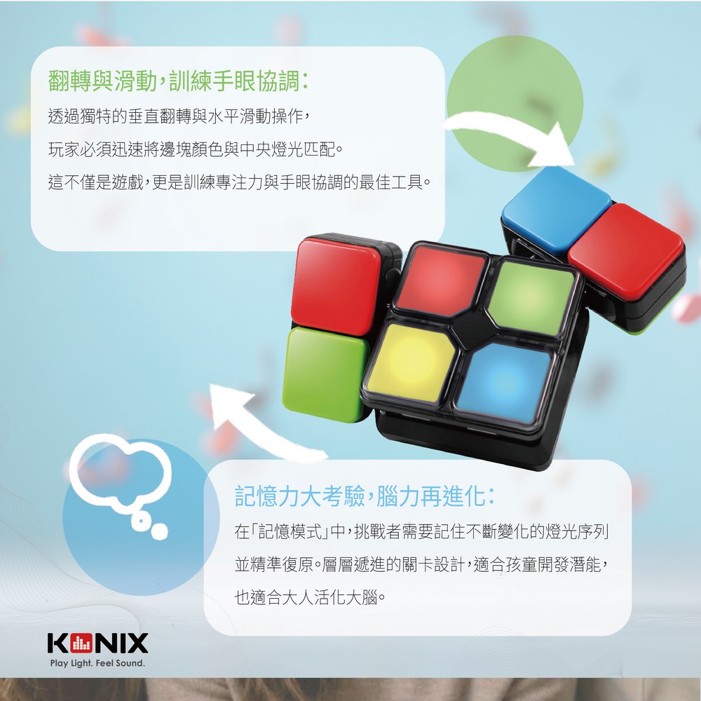 KONIX樂動魔方是一款結合反應力訓練、手眼協調與記憶力挑戰的益智遊戲,適合兒童、學生與成人使用。不論是親子互動、派對遊戲或日常紓壓,都能帶來高度娛樂性與學習效果,是近年熱門的益智玩具推薦之一。
