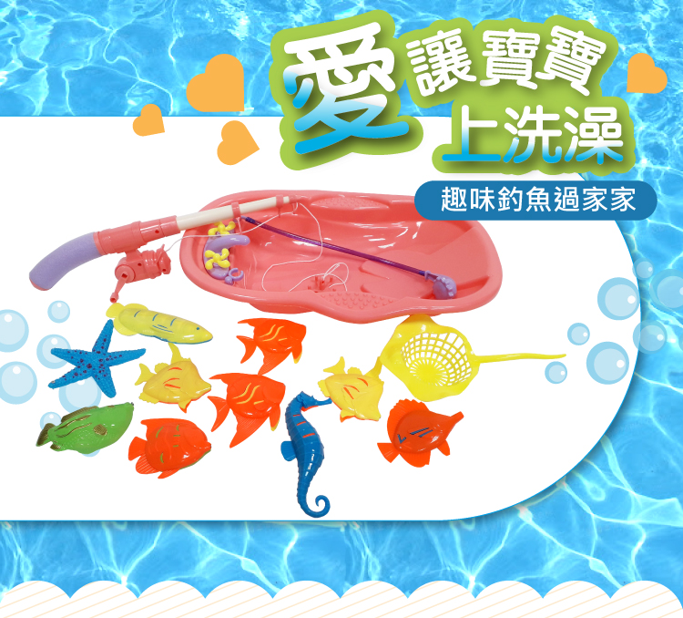 內容物:一袋=(魚x8、海馬x1、海星x1、浴盆x1、伸縮釣竿x1、魟魚撈網x1)13件裝入