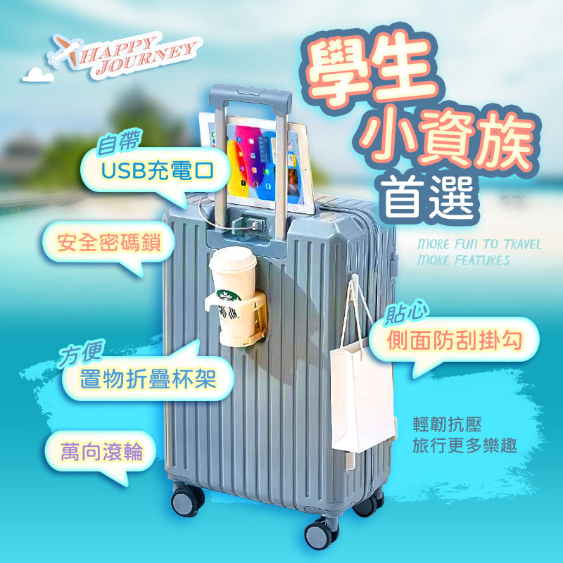 【HJY】鴻嘉源 多功能USB充電行李箱K26-黑