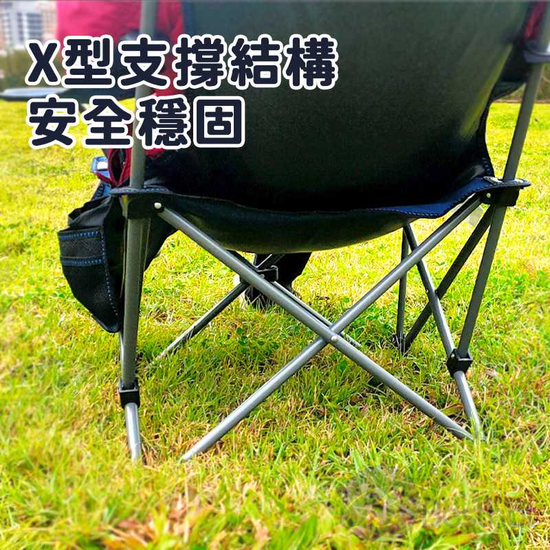 安全穩固,X型支撐結構; 自由調節角度,使用更舒適; 自帶置物杯架、網狀收納袋; 好收不佔位,輕鬆享受休閒時光。