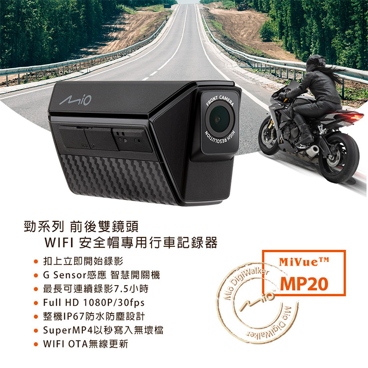 Mio MiVue MP20 勁系列 前後雙鏡頭 WIFI 安全帽專用行車記錄器(送64G卡) 行車紀錄器