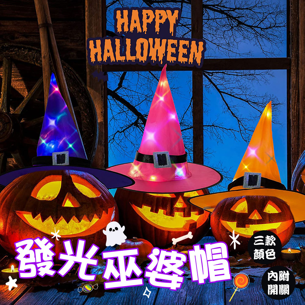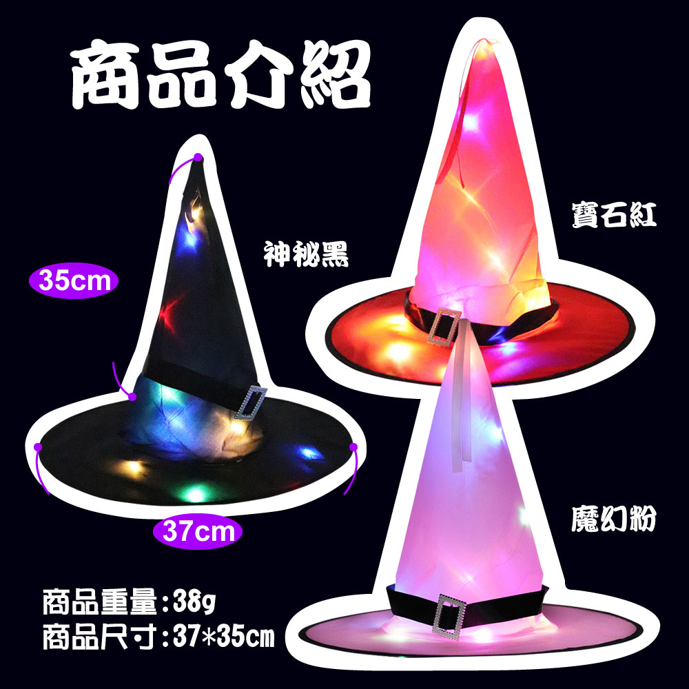 發光巫婆帽【寶石紅】 發光帽 萬聖節 造型帽 巫婆帽 鬼節派對裝飾道具 LED發光巫婆帽 魔法師女巫帽 巫師帽 派對帽 巫師帽