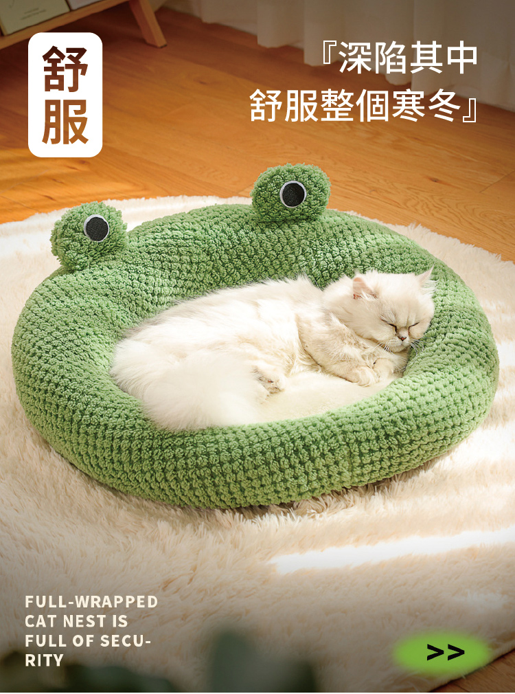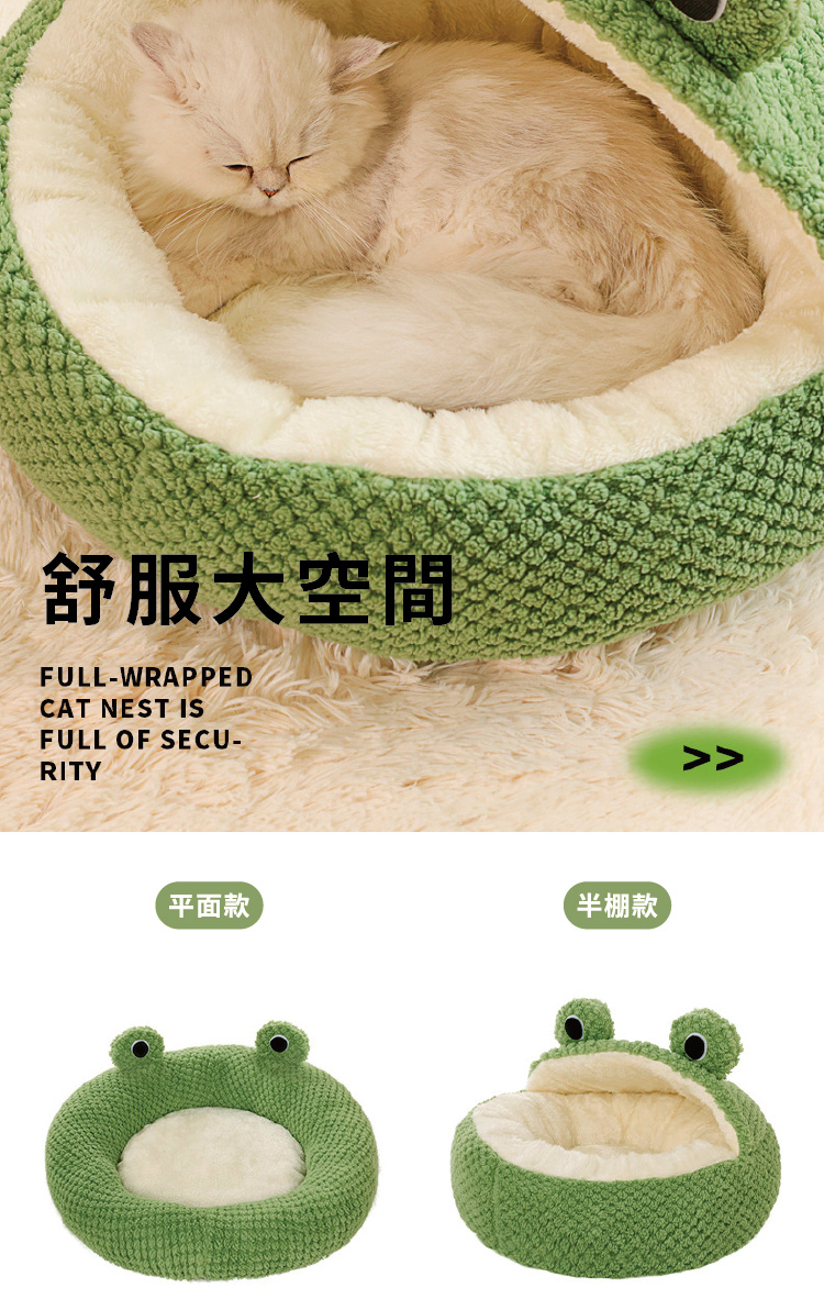 Q版青蛙保暖寵物窩 (半棚款) 寵物床 寵物墊