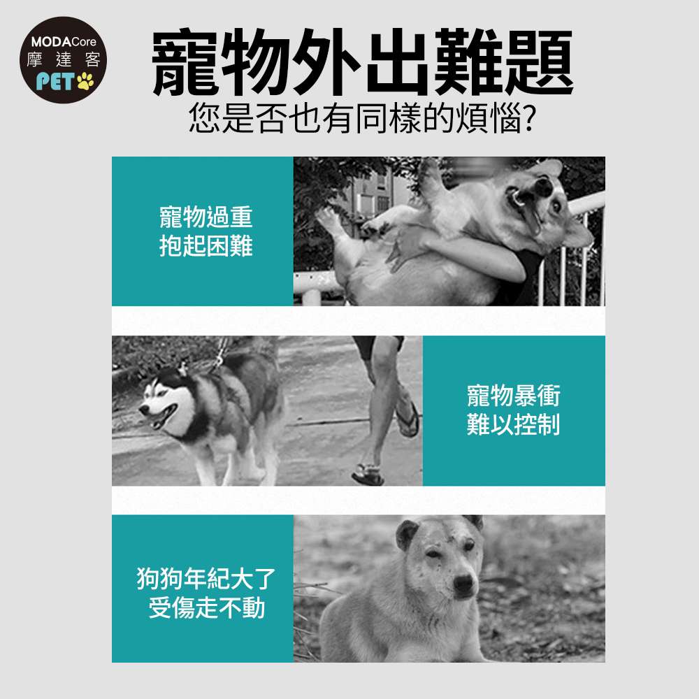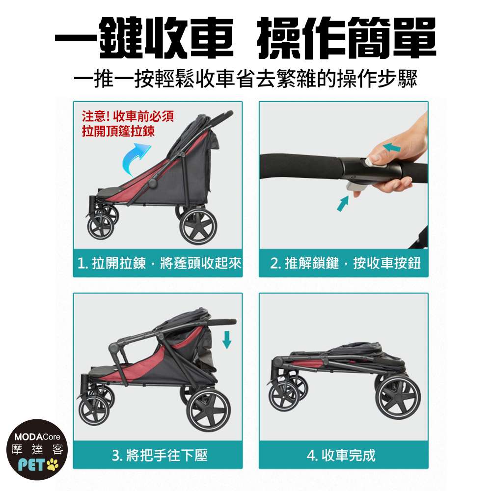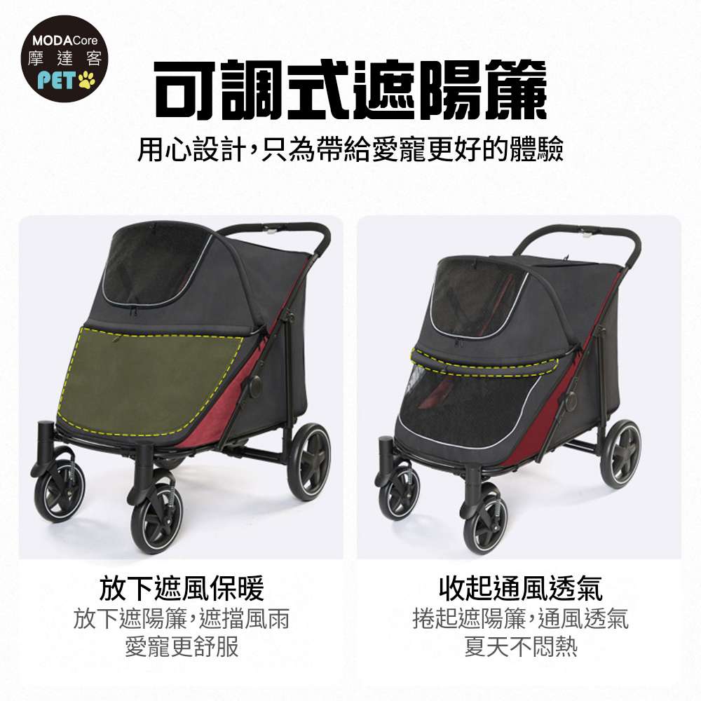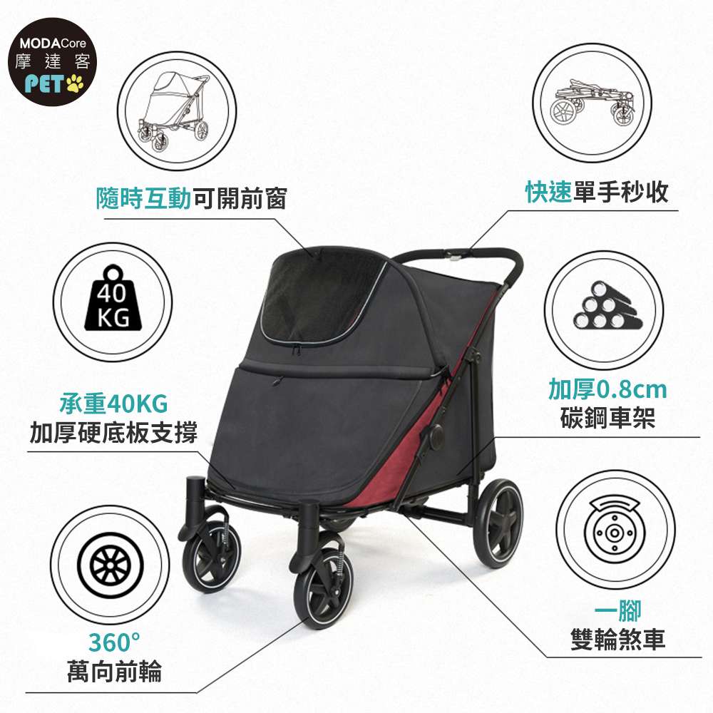 摩達客-HB03高齡 行動不便照護型 大空間x輕便折疊寵物推車 黑紅色款/40KG以下貓狗適用