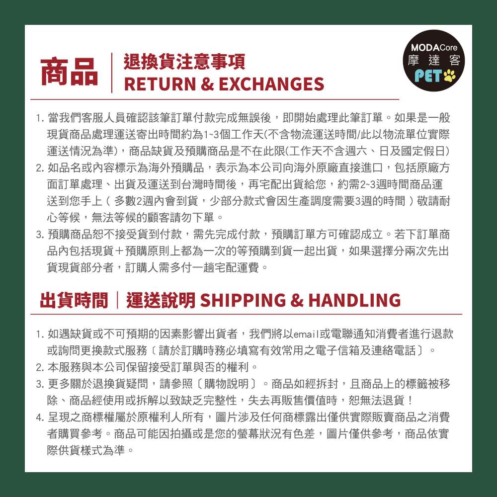【退/換貨&售後服務】