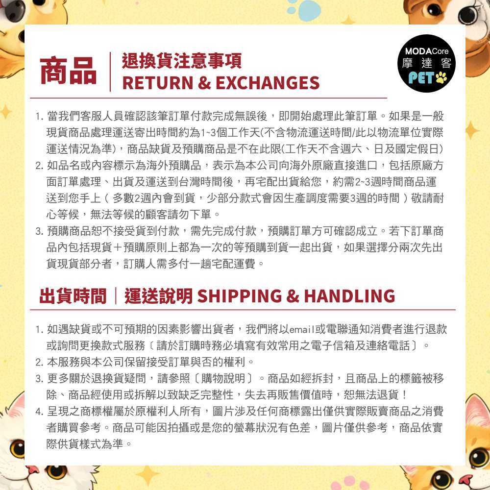 【退/換貨&售後服務】