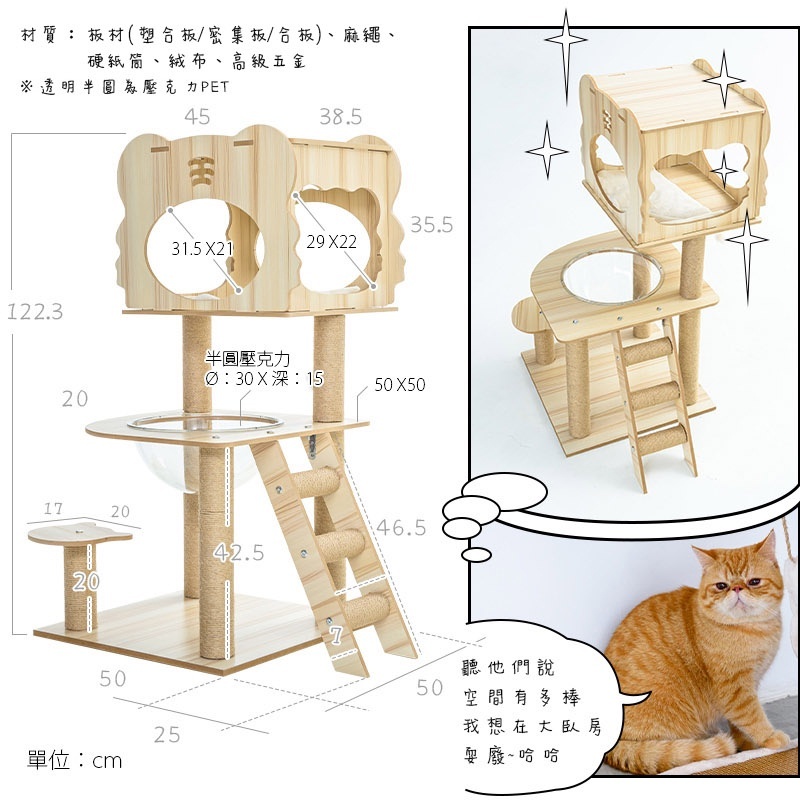 【Y HOUSE】貓跳台/貓爬架/粗麻繩柱/大型貓窩/貓別墅/太空艙-一景二室