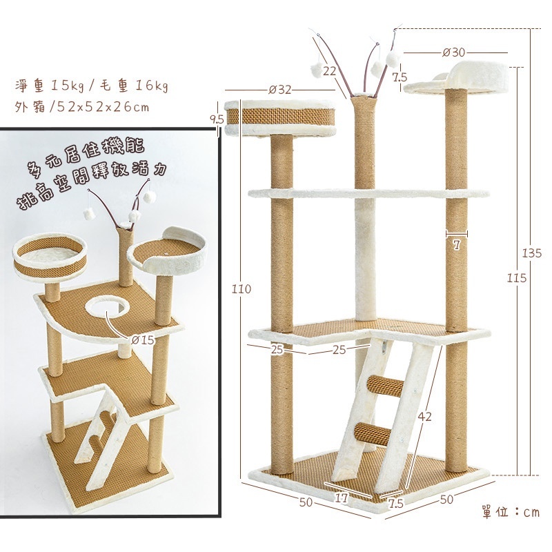【Y HOUSE】貓跳台/貓爬架/粗麻繩柱/大型貓窩/貓別墅-三景一室