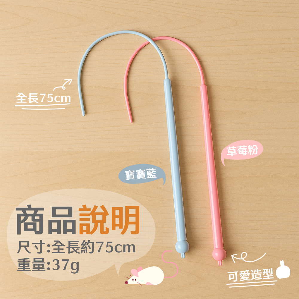 貓咪逗玩棒 - 老鼠尾巴玩具 �❤️🐭這是一款超可愛的模擬老鼠尾巴逗貓棒!😍 看起來非常適合陪伴您的貓咪玩耍喔~商品特色 ✨尺寸:約75cm長 📏重量:約37g 輕巧好拿 🪶材質:優選ABS材質,安全無毒 ✅三步驟簡易組裝 🛠️1️⃣ 把尾部裝進中間管子2️⃣ 手柄和中部銜接3️⃣ 完成安裝 (好簡單呢!😊)貼心設計 💕可愛貓頭手柄設計,好玩又好看 😻柔軟尾巴部分,真實模擬老鼠尾巴擺動 🐁可拆式設計,尾巴可替換,延長使用壽命 👍符合人體工學的握把,舒適不卡手 👌互動樂趣 🎮抓:激發貓咪狩獵天性 🐯咬:釋放情緒,舒緩心情 😌抱:增加感情互動,玩耍更盡興 🤗貼心好處 🌈輕巧不佔空間,攜帶收納都方便 🎒粉嫩色系選擇,療癒又好看 🎨增進與貓咪的親密關係 💞滿足貓咪天性,讓牠不再無聊 🥰這款逗貓棒絕對是貓奴必備良品呢~快來陪您的毛孩一起玩耍吧!😸✨