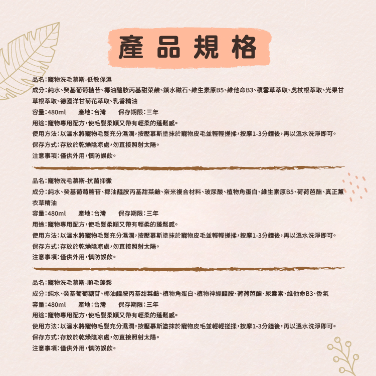 【毛當家】寵物洗毛慕斯X4入(480ml/入)