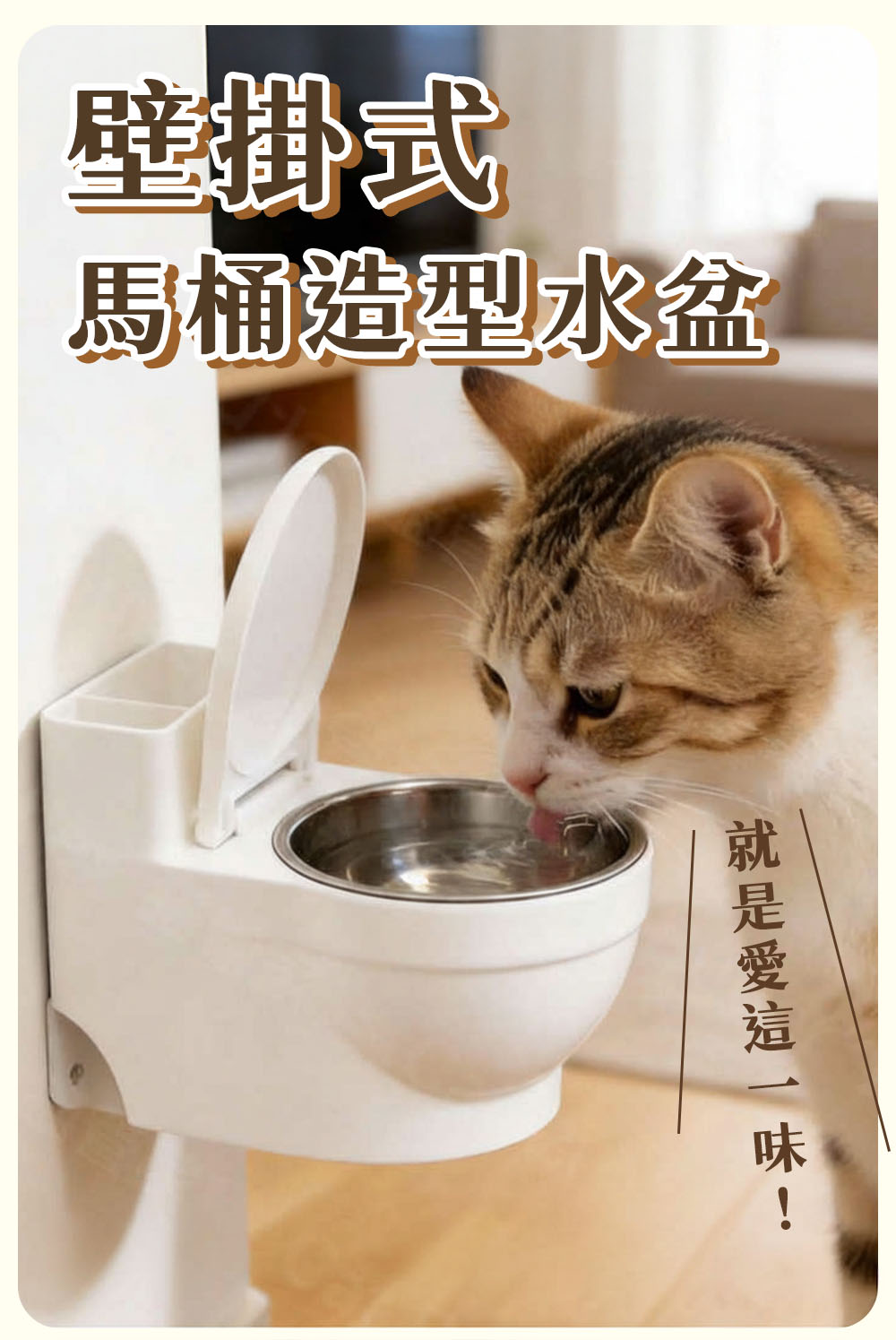 貓咪水盆 馬桶造型 壁掛 水碗 寵物碗 水盆 150ml 飼料碗 寵物餵水器 不鏽鋼內膽 趣味水碗 多貓家庭推薦 飲水器
