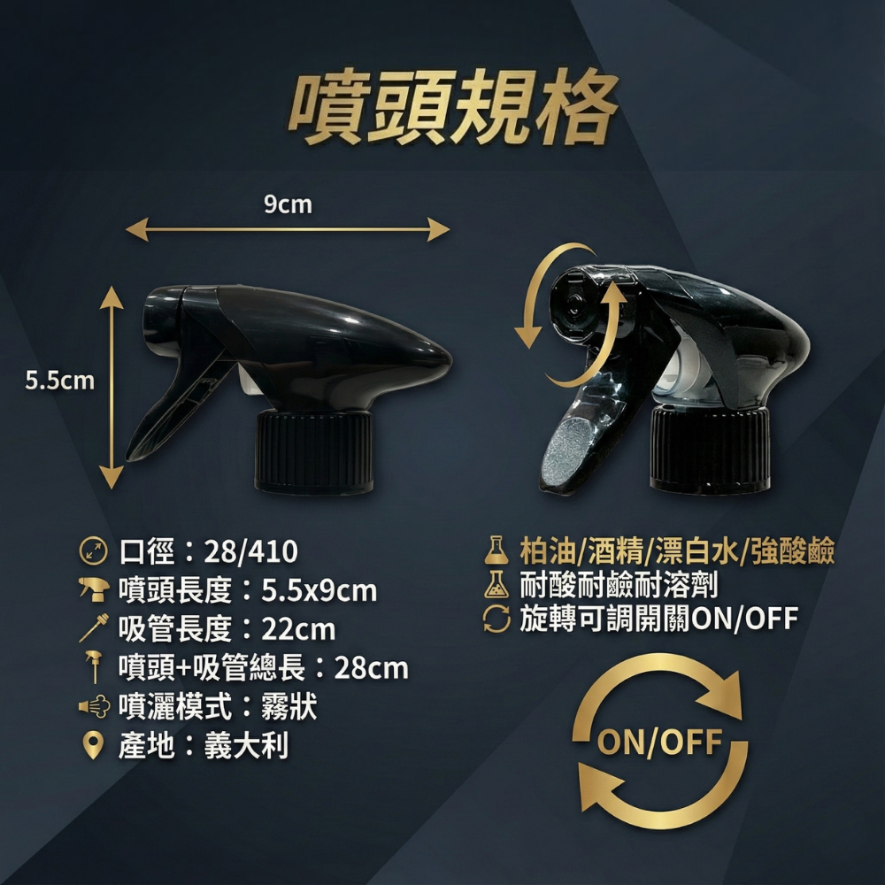 為什麼專業汽車美容店家都指名這款?因為我們不惜成本,將世界公認最耐用的「義大利製噴頭」與「台灣製加厚 HDPE 瓶身」結合成最強噴瓶!