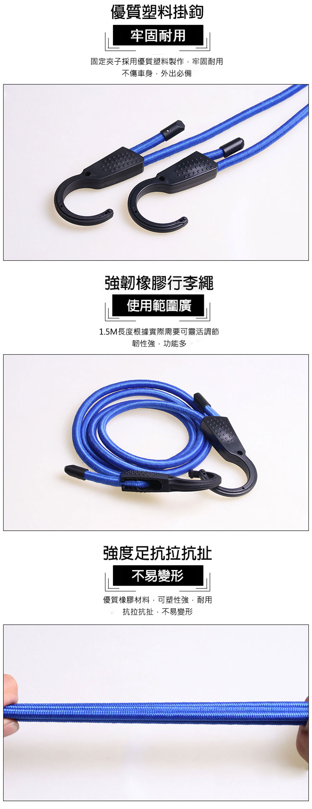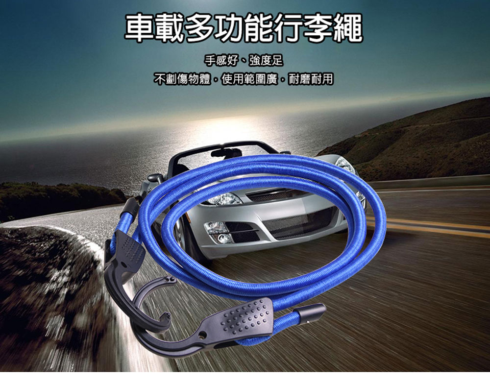 ‧ 品名:車用行李繩‧ 尺寸:長約1.5米‧ 材質:橡膠簾線、ABS‧ 顏色:藍色‧ 數量:1件‧ 產地:中國