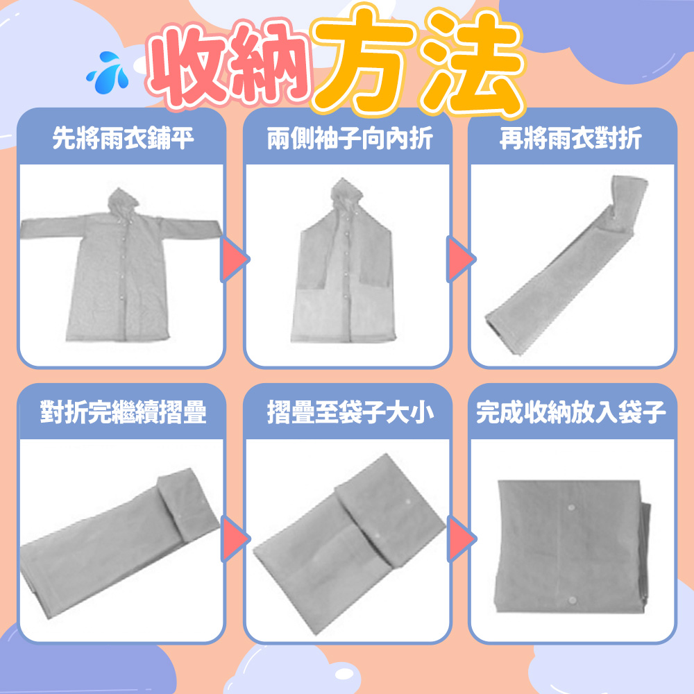 建議第一次使用前要先翻面即可開始穿搭雨衣